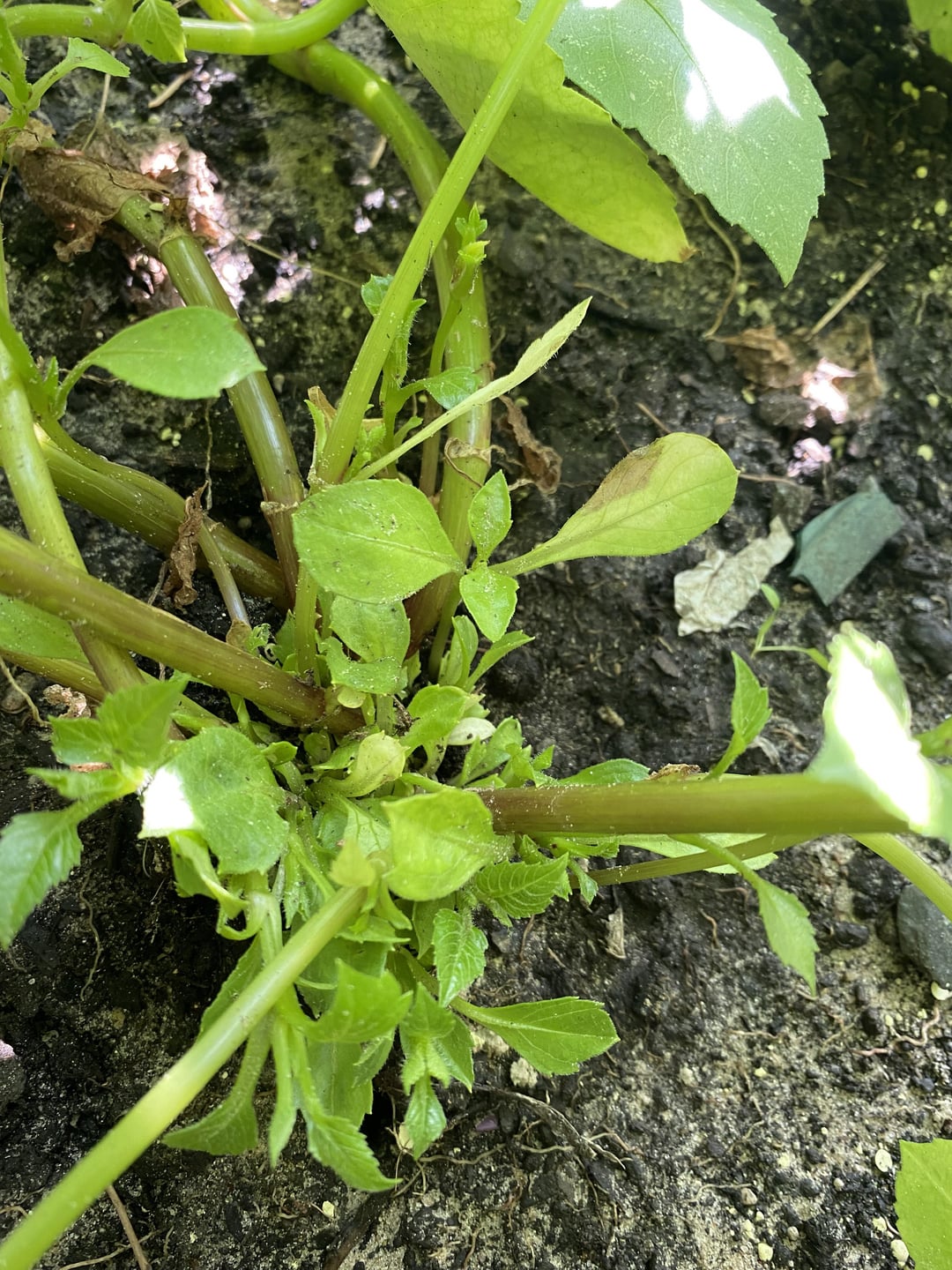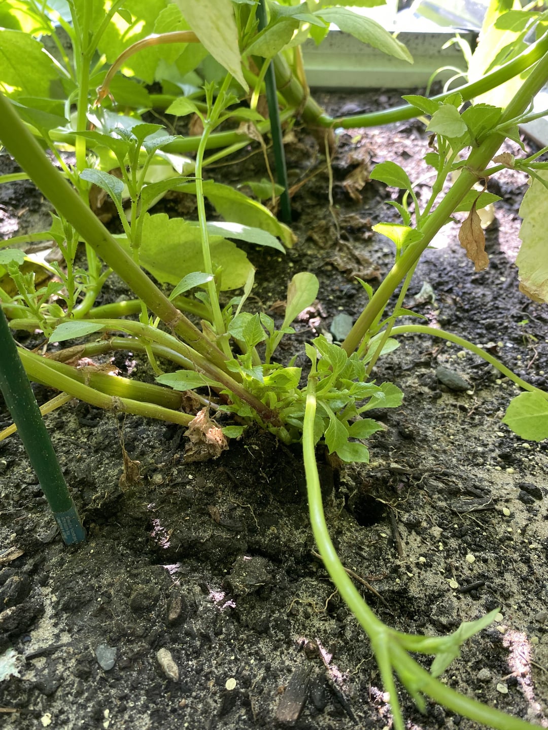 This plant got started a bit late, so no flowers yet, but it’s growing well and looks happy overall, However, when I went to adjust the ties on the stake today, I noticed some strange growth at the base. I’m worried it’s leafy gall. Thoughts?