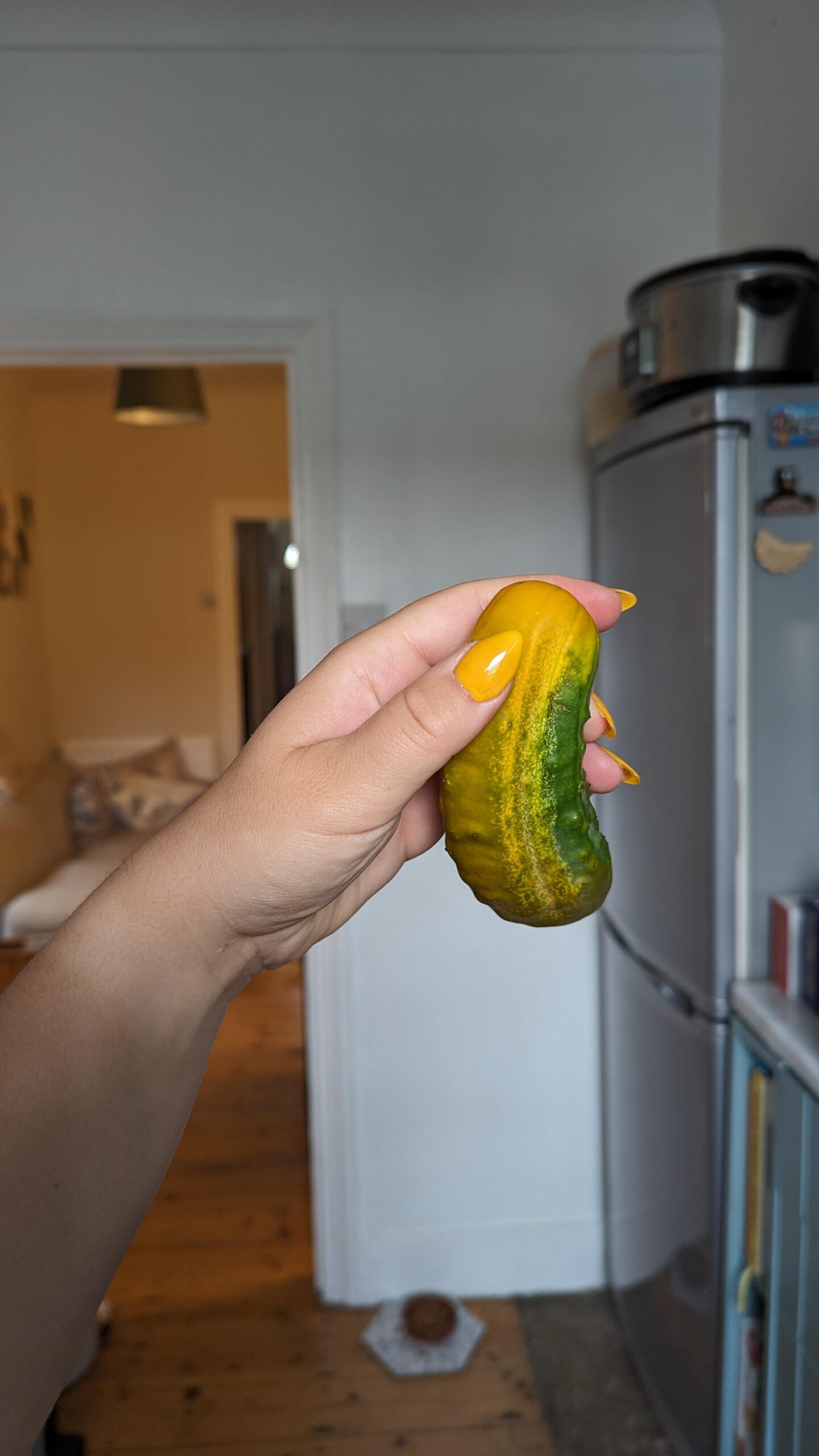 Hi, I’m new growing cucumbers but as I understand it (from veg-growing fb groups) they turn yellow when overripe. You ideally want to harvest as soon as the end (not attached to the vine) has rounded out, and in the morning or evening. It will be bitter eaten fresh, but might do alright in brine or pickled.