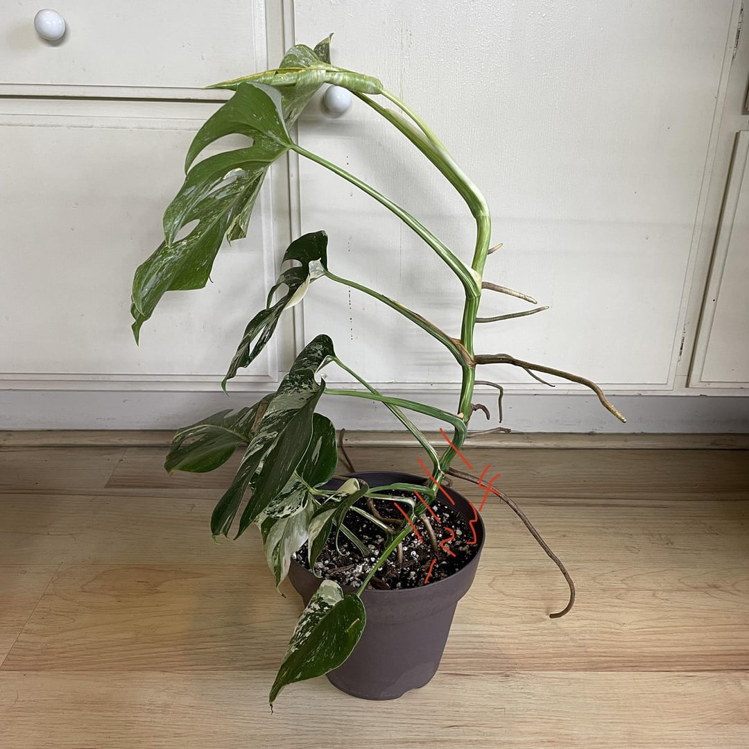 Should I chop and prop this? And if I do can y’all please recommend at which numbered line that I make my cut at? Or should I let it grow more. Last pic is when I first got it last sept. Thank you!