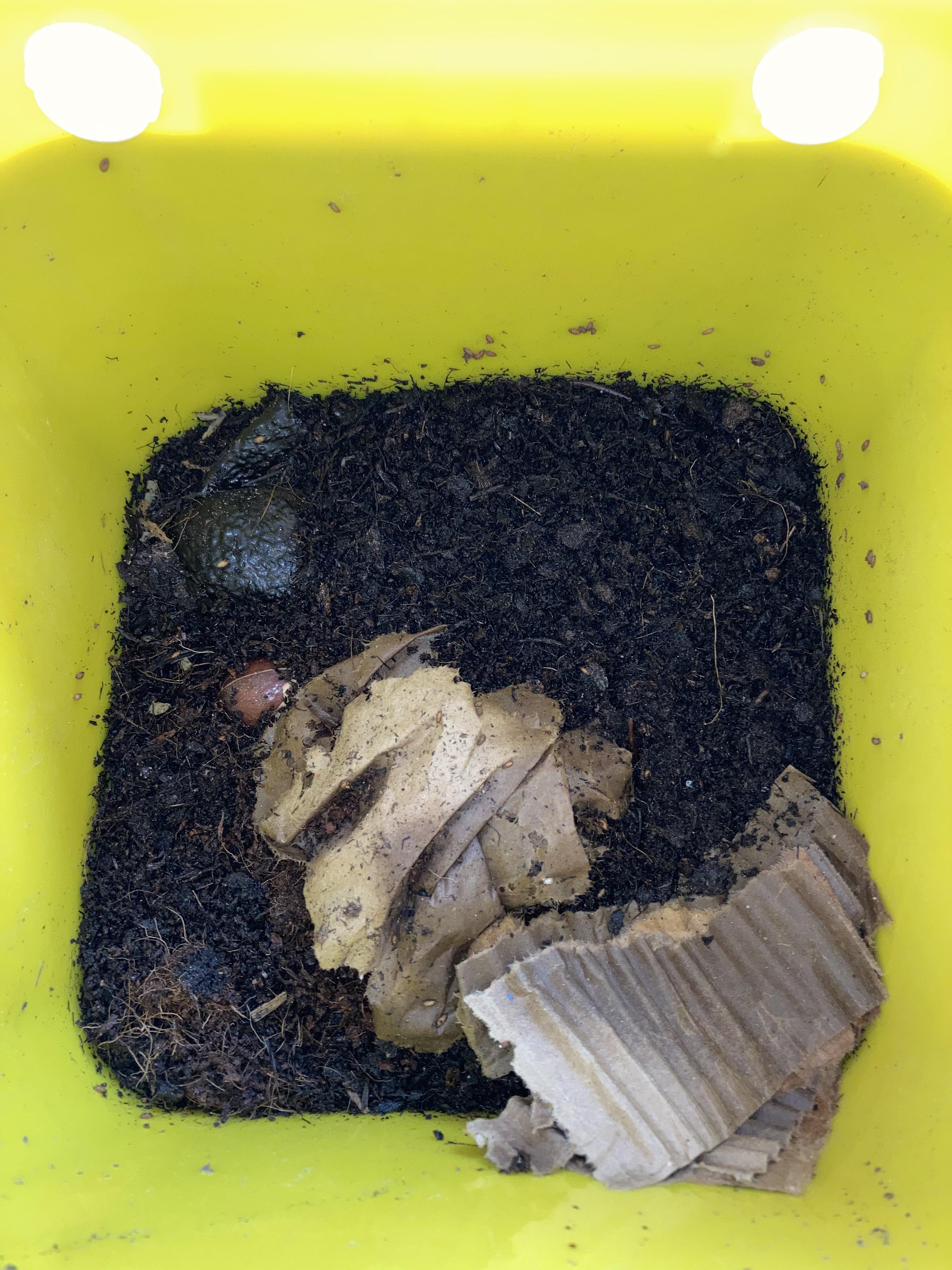 My worm bucket has maggots in it I think? I’ve only had two weeks and keep in indoors. It smells good and is moist. I see my worms occasionally moving through the dirt. Should I be worried about the presence of the flow larvae? When can I add more produce scraps because we have a lot?