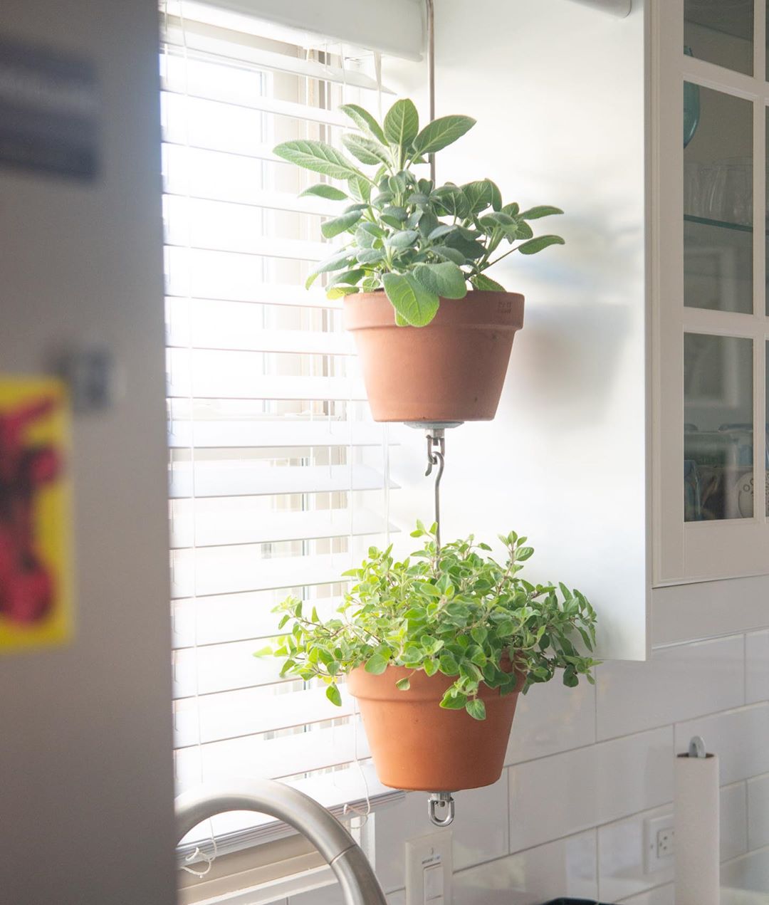 Transform your kitchen window above the sink into an vertical herb garden easily with SkyPots 🚿🌿✨ No ledge required . #skypots #instantgarden #kitchengarden #herbgarden #herbgardening #hangingplants