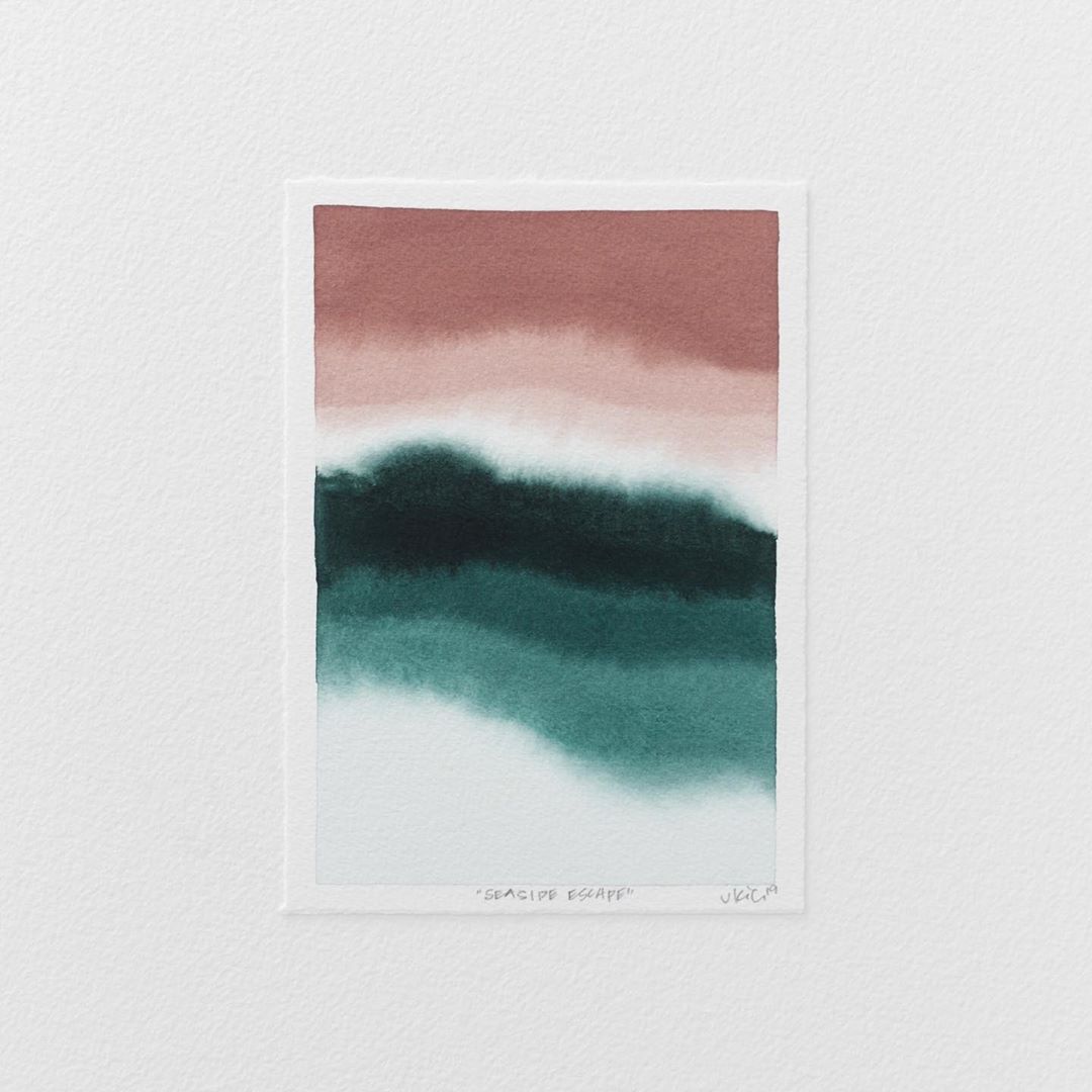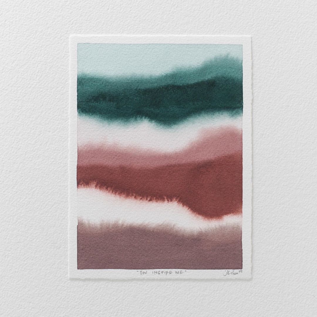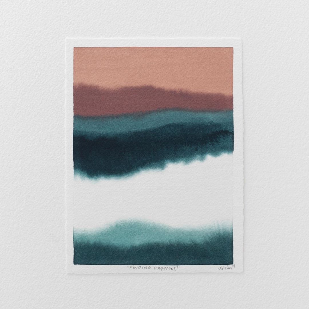 Also wanted to share my process of making these. I put a lot of time, energy and love into each one. These pieces start by hand tearing each piece of paper, I use a beautiful French paper, Arches 100% white cotton. Marks are made around the border to serve as my 1/4” guide. I mix each layer of color by hand and am careful to bleed the layers slowly into each other without over saturating which can lead to puddles. About 1 in 5 doesn’t make the cut. After they cure, I flatten them in a simple process so they are frame ready, no buckling. I give them a title and a signature then I’m on to photographing and listing them. After your order is placed they are carefully packaged and ship from my studio.