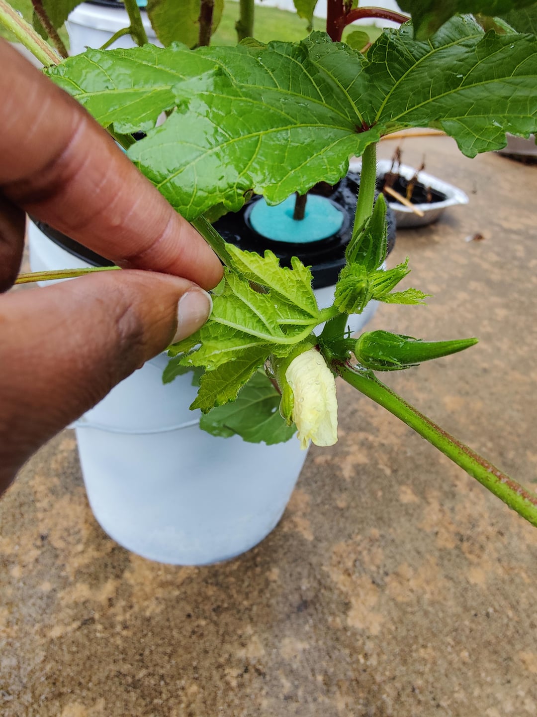 My 2nd go at Hydroponic Okra. My first go (back in July) had only one plant reach maturity and produce fruit, and it only produced two pods before succumbing to root rot.