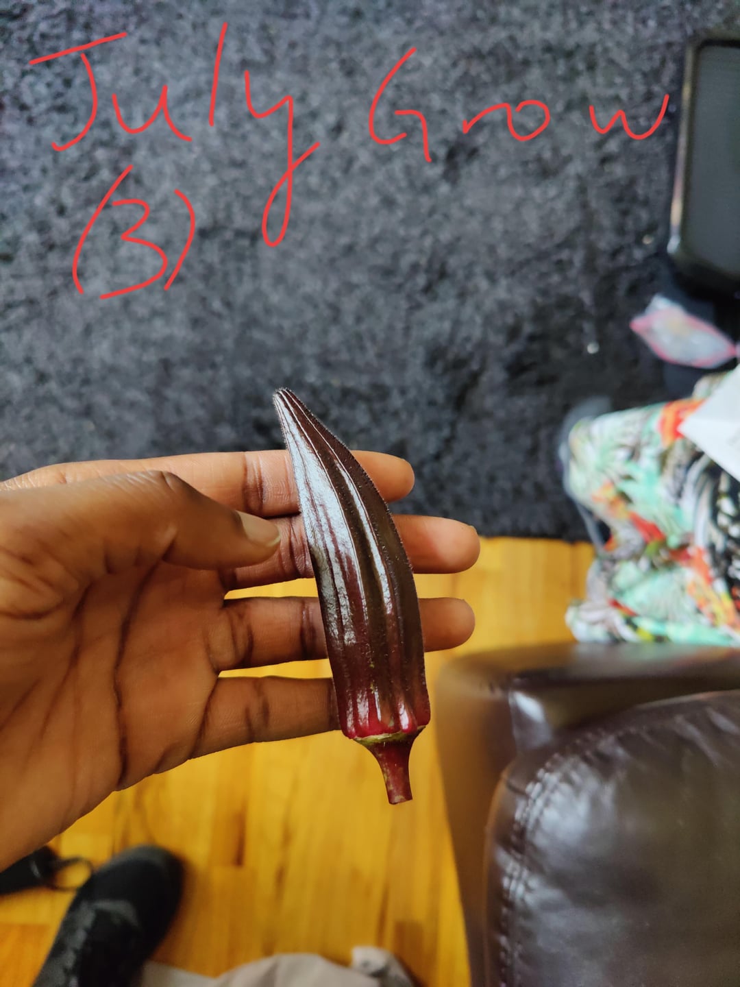 This time I see three flowers on three plants, and okra nub that seems to have been successfully pollinated!