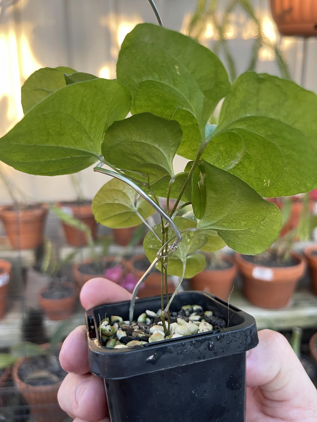 A lot of my seedlings are now starting to vine. Being only a few months old I didn’t expect much for the first year. I already have a few getting on a couple of feet long and have already used up the primitive trellis requiring me to already loop it back. It’s amazing seeing these grow quicker then expected and already seeing some with different growth habits. I got one that has massive leaves and a really thick stem compared to the rest but still only short vine but biggest caudex. My biggest caudex is between ping pong ball and a marble.