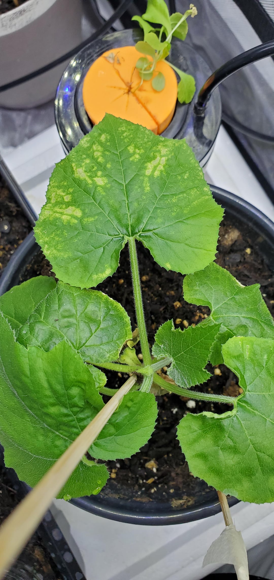 As for the zucchini, it’s doing okay but just noticed yellow spots last night after coming back from work. Snap peas just don’t like the heat I’d say, and so they are wandering aimlessly as you can tell. Small basil plants doing alright but everything just seems to grow super slow in my setup. Maybe once we move to the Midwest next year I can get back to better climate conditions and have done outdoors hydronics going too with success. 🤷♂️