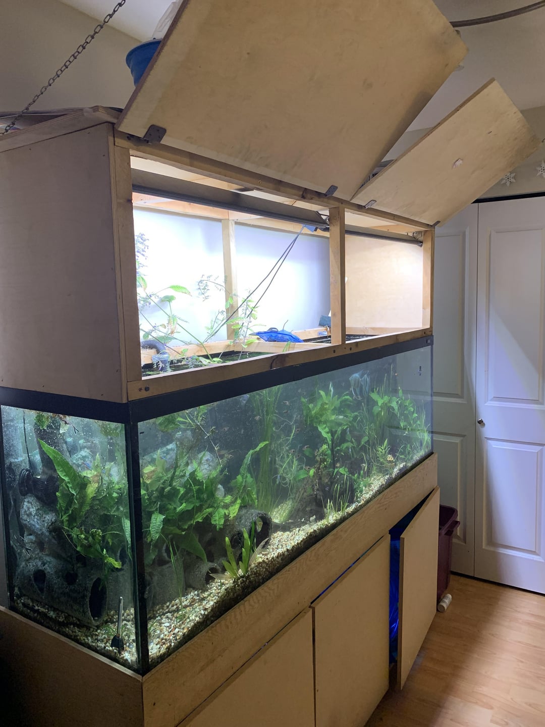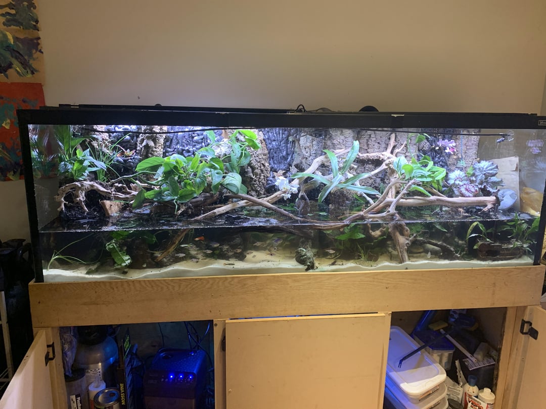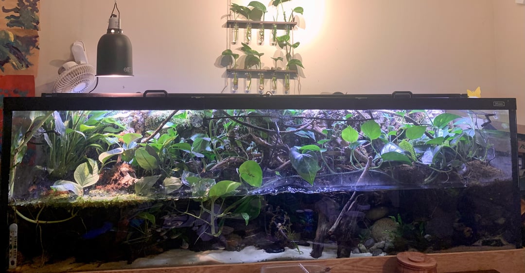 This paludarium is 4 months old. After a flood and lost all my fish. This is my first attempt. I will post pictures of the progress. Super proud.
