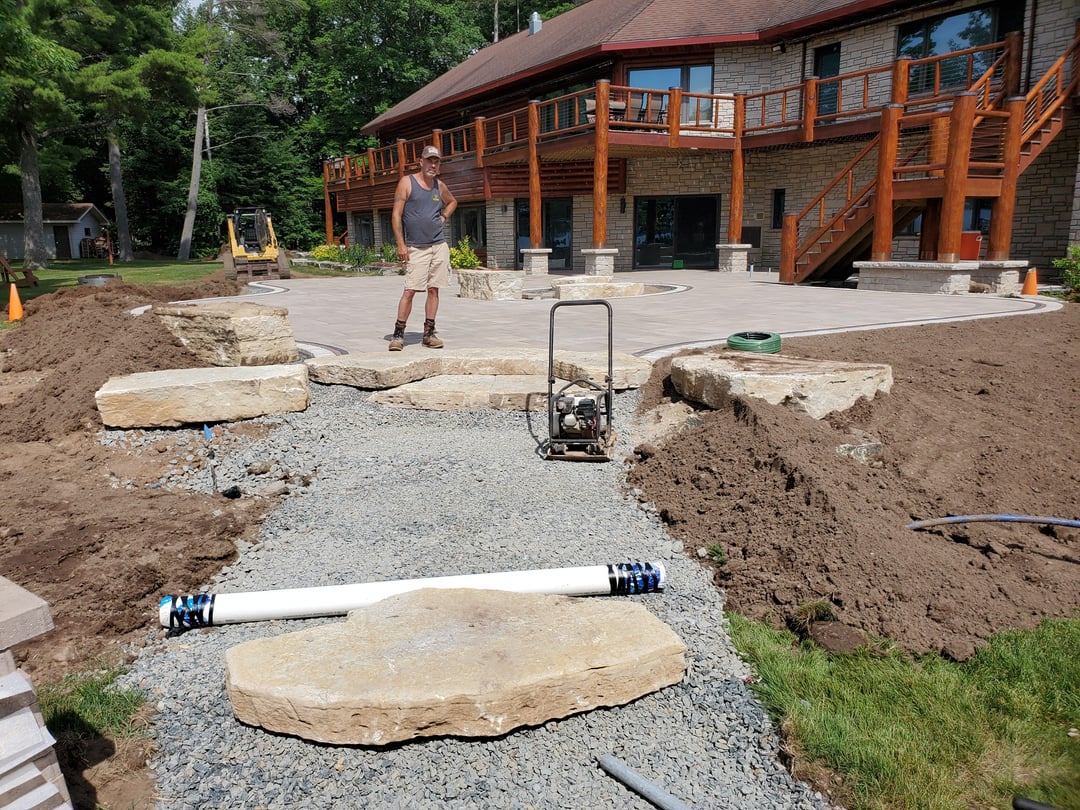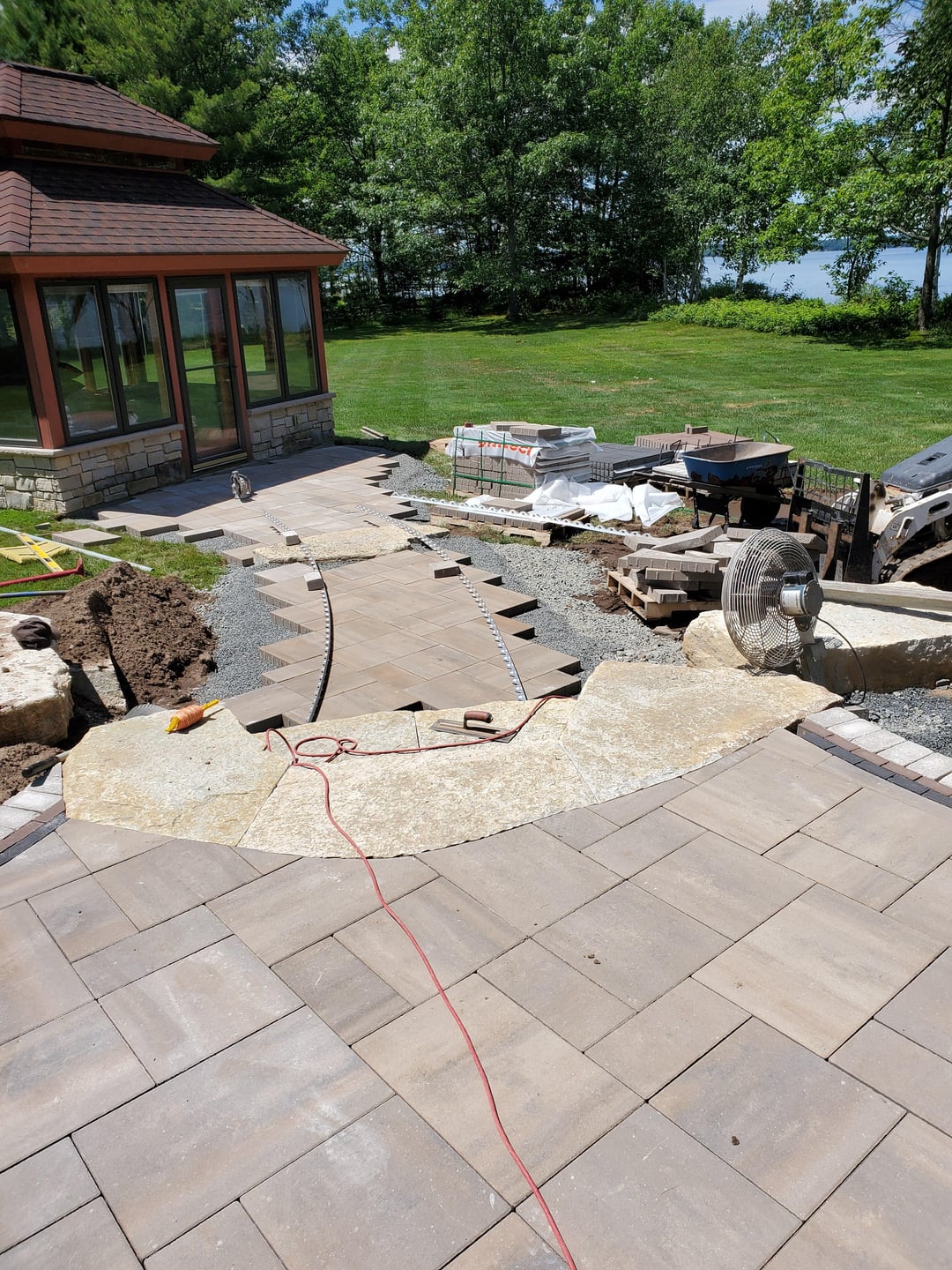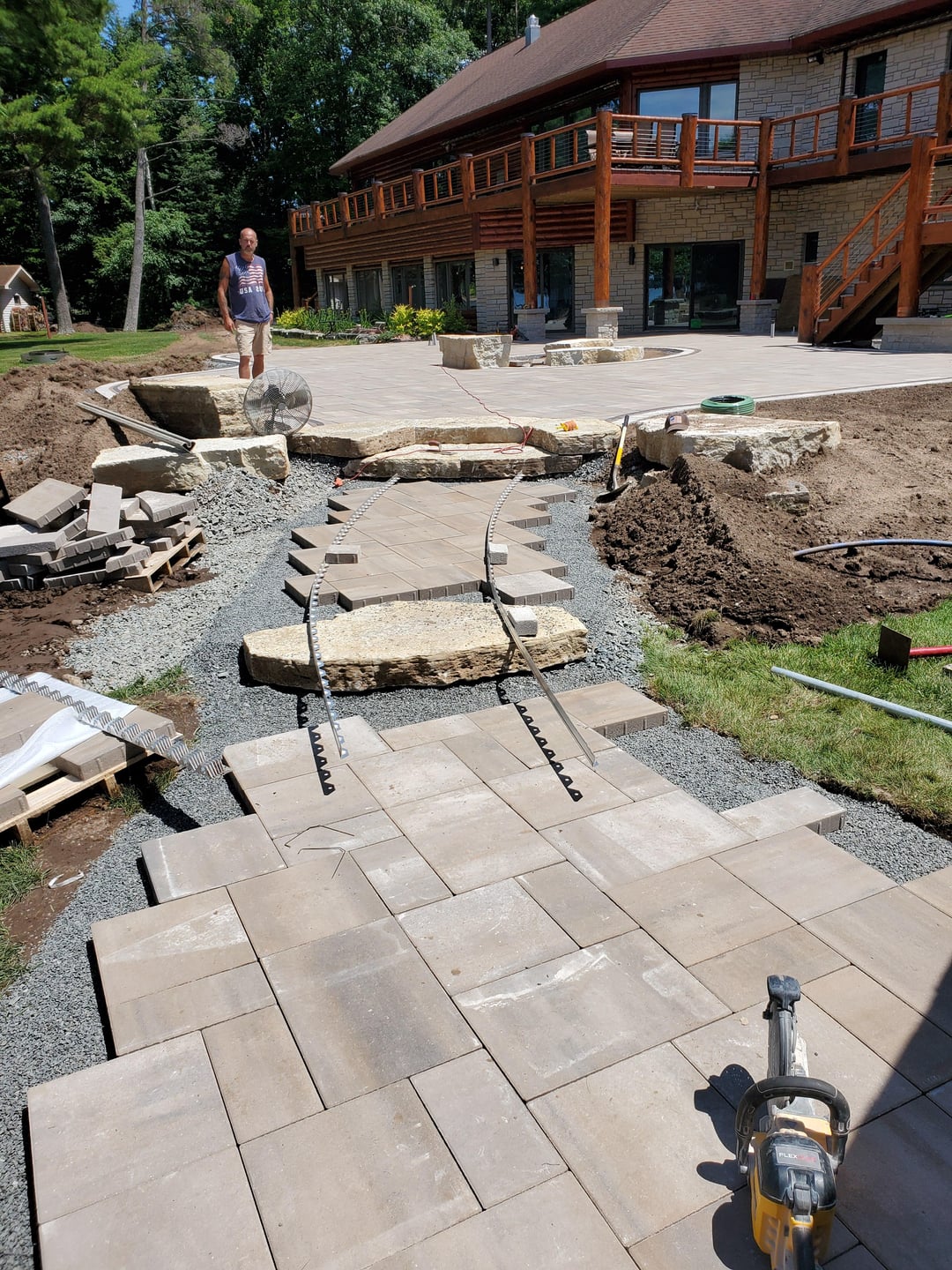 Very nice work! But I’m really not digging the natural stairs. Would have preferred just sticking with pavers. The stone bench seating is mint though.