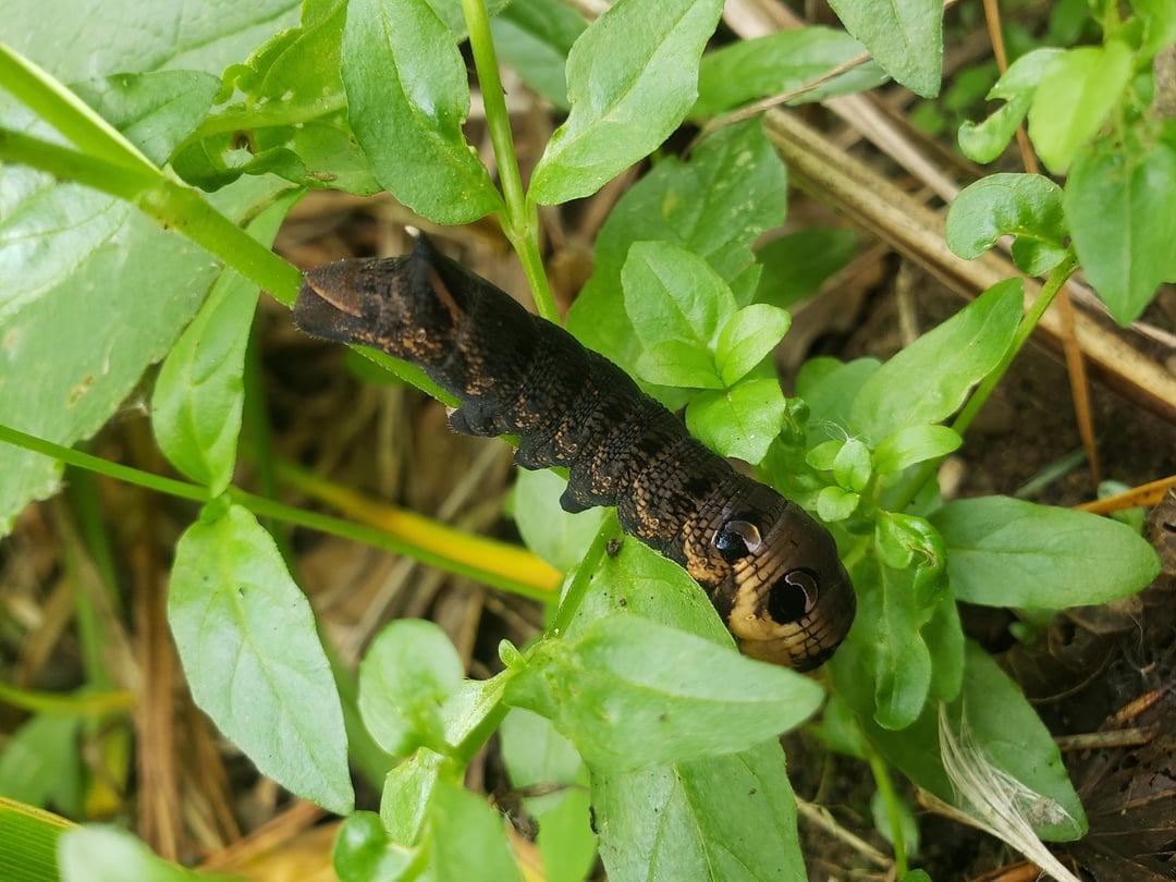 Elephant hawk moth caterpillar hiding in the weeds by yorkshire87 gardening uk Write A CommentYou must be logged in to post a comment.