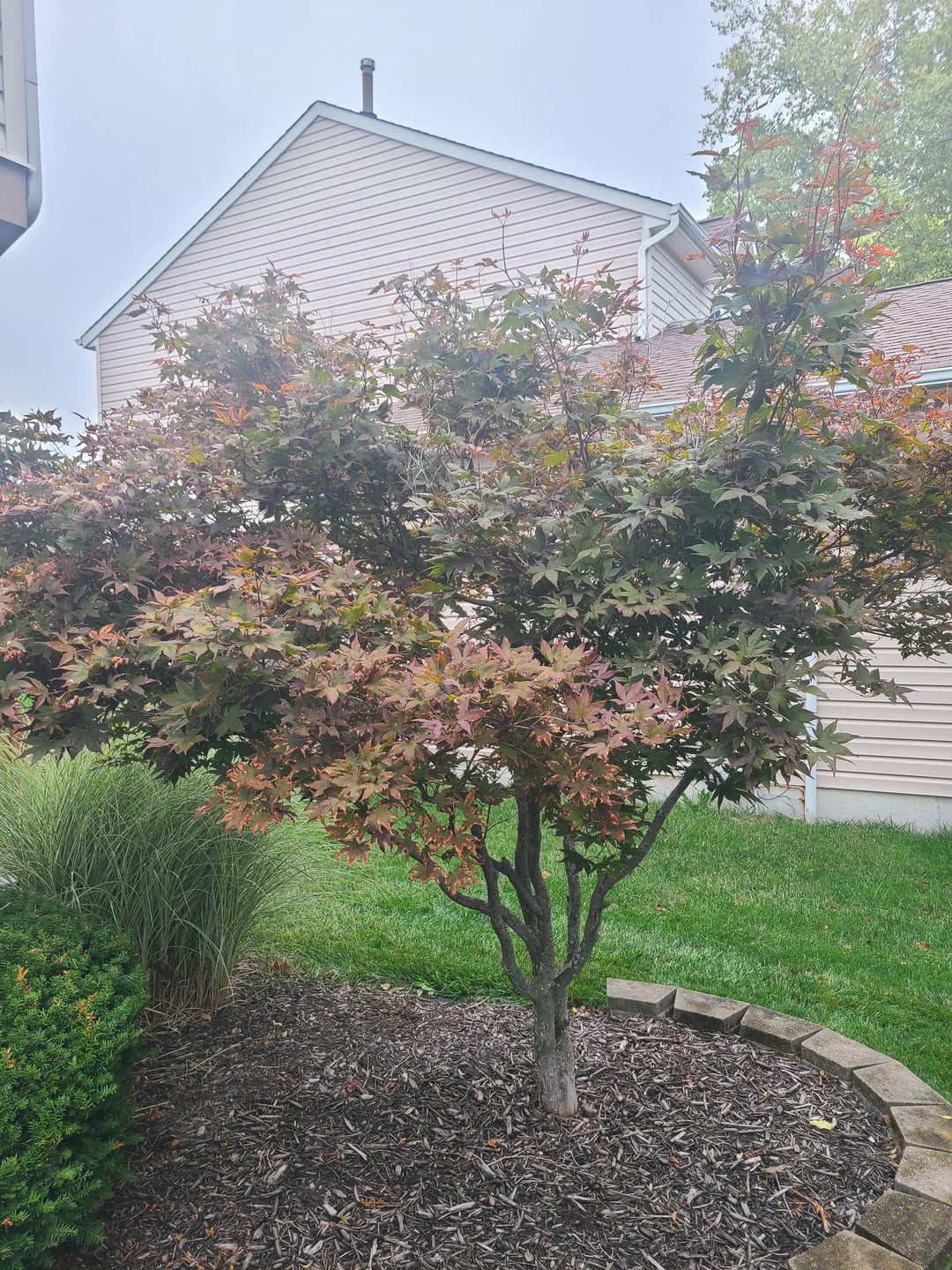 Also at some point I’d trim that taller lead on the right. Japanese maples are prone to co-dominant stems and sometimes included bark resulting in them eventually splitting in ice storms or wind.