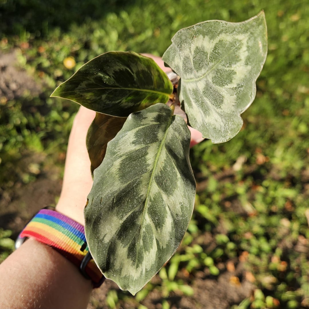 So I just got these lil guys in the mail, they were sold as a White Star and Helen Kennedy. The Kennedy looks right to me, but what do you guys think about the other one? Or is that one possibly wrong too? I’m not sure I particularly care if it is wrong, but I like knowing exactly what I have here if it’s going to be a slightly fussier than normal plant. The sunset light skews it a bit, but the stripes in the one are a lovely light pink like you’d typically see on an ornata, but the leaves are the wrong shape for that. Google Lens has voted Beauty Star for that one and is very indecisive on the other.