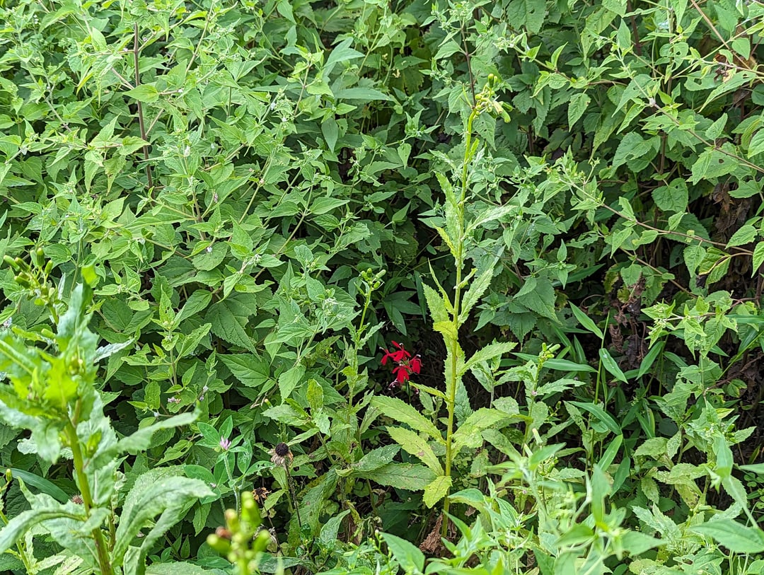 It might be browse pressure that’s the problem, rather than some soil/moisture/sunlight aspect of my yard. A lot of my yard is moist and shady, so it seemed like cardinal flower would be a good fit. But it has rarely worked out.