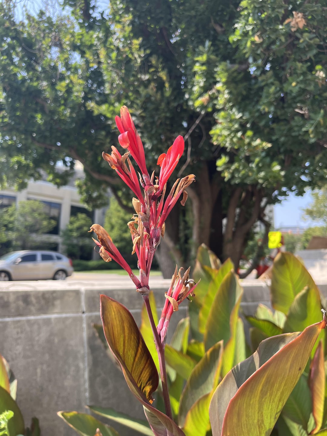 Canna indica hybrid. There are far showier ones. I wouldn’t plant *this cultivar*. My personal favorites are the [Italian cannas](https://www.google.com/search?sca_esv=561395159&rlz=1CDGOYI_enUS746US746&hl=en-US&q=italian+cannas&tbm=isch&source=lnms&sa=X&ved=2ahUKEwjLofPGjIWBAxVhTjABHeYkD7sQ0pQJegQIDhAB&biw=414&bih=720&dpr=2).