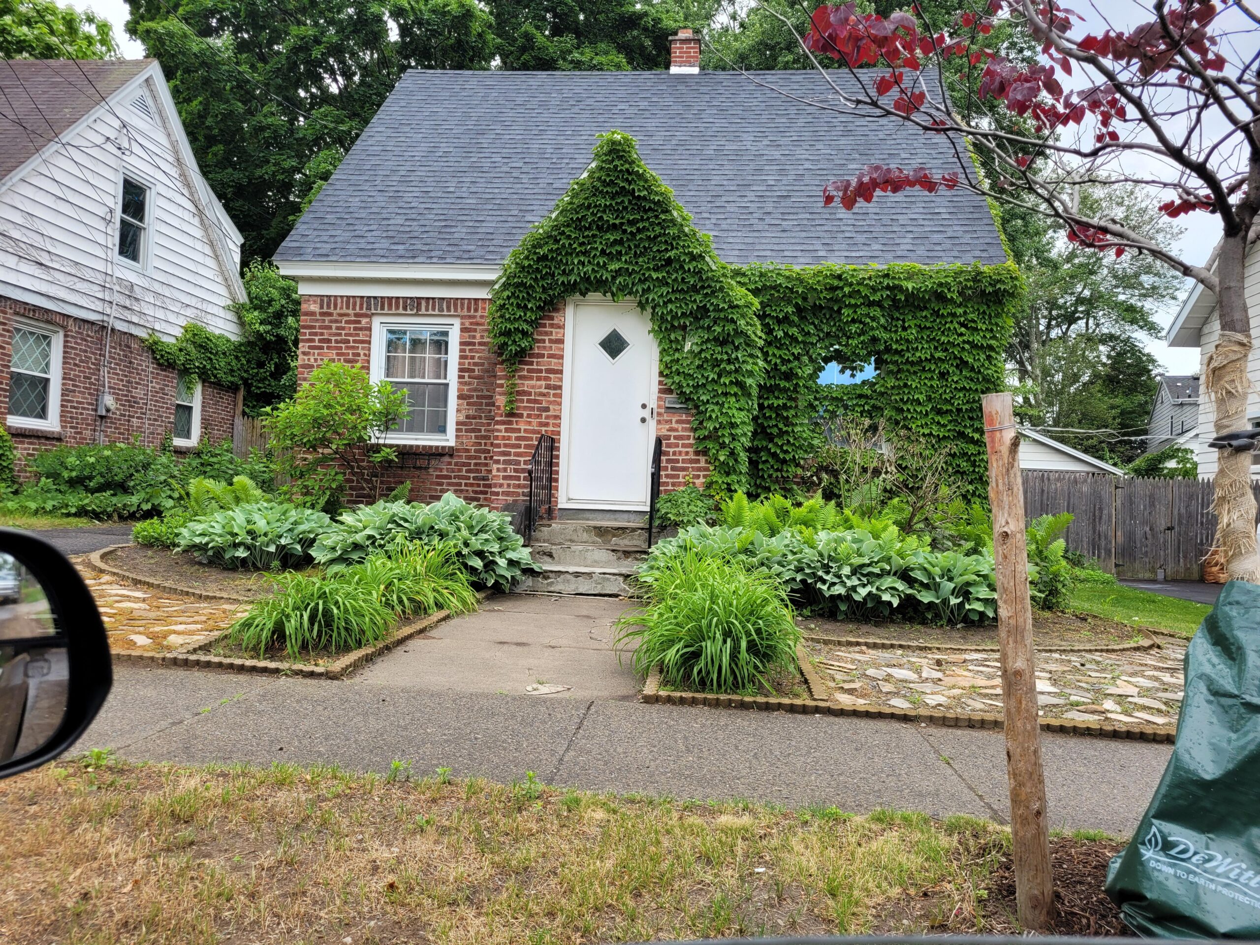 Last time I posted a pic of this yard in the spring time. You could see the moss growing between the stones (mostly on the left side. The right side has gravel between the stones.) Now you can see how it looks with the perennials growing in. I took this pic around early June. Just sharing this beauty – it’s not my house.