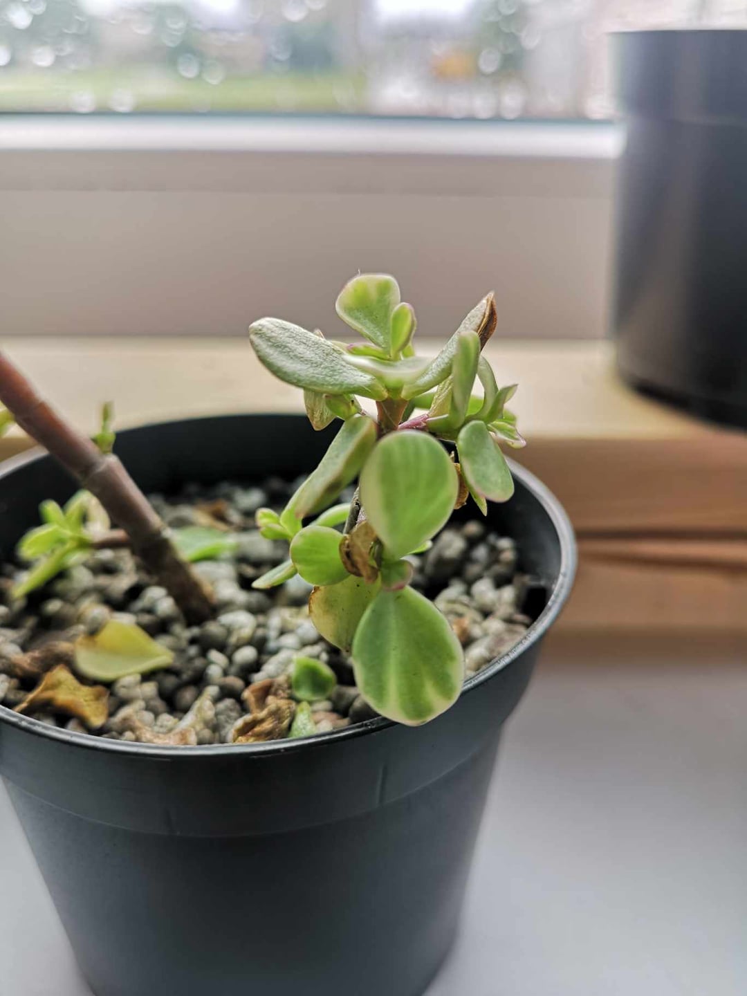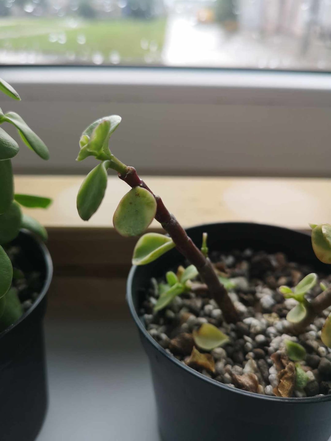 Hi guys! So, I have a Portulacaria afra. Well, actually two of them. One (larger, the first in the photo) is a normal Portulacaria afra, while the other one is a variegata. First one has about 6 months, while the other one has about 3 months. They are in the same kind of pot, have the same mix of soil, and are on the same window (facing south, northern hemisphere), pretty much next to each other. But while the normal version is slowly, but beautifully growing, the variegata is… well, not looking that great. It hasn’t changed much in those 3 months, it even dropped some leaves. I looked at the roots, but they look fine to me (sorry, forgot to take photos of them). I’m just starting with plants, so I don’t know what to do to help it grow. I thought that both normal and variegata versions have same requirements, but maybe I was wrong? I’d appreciate any help.