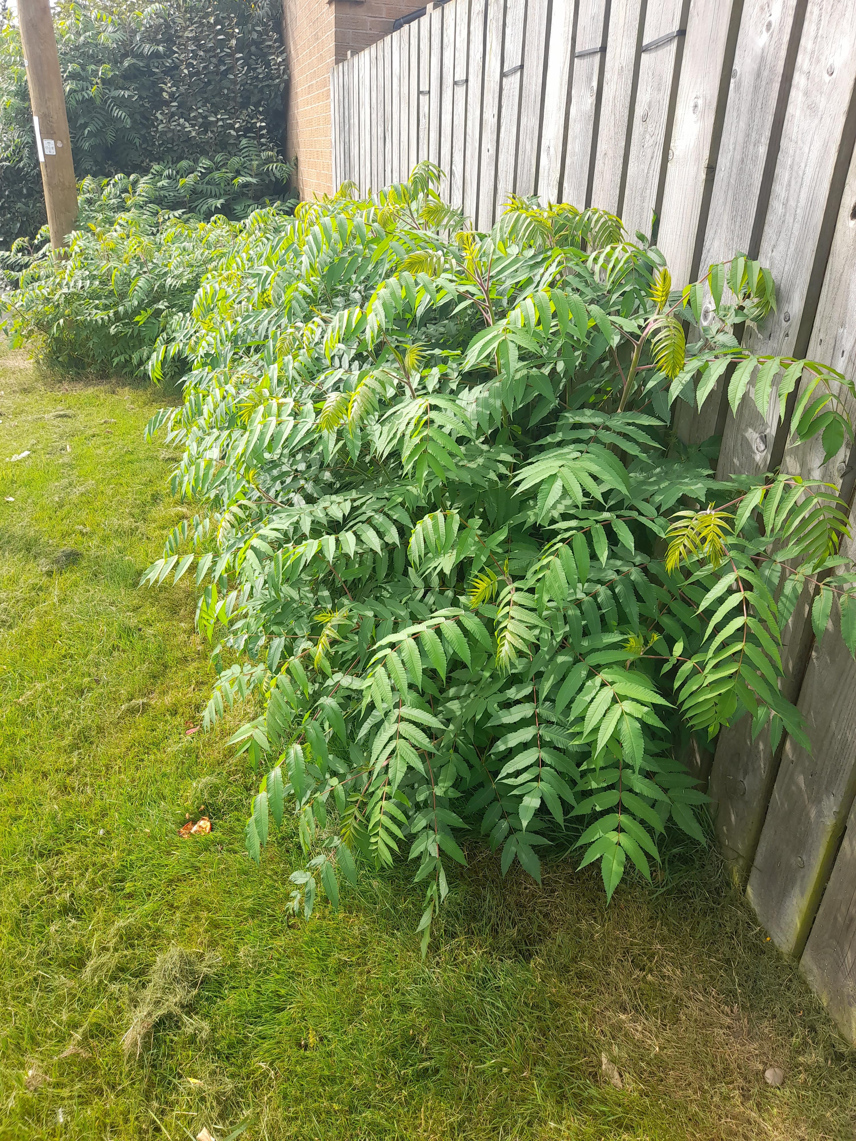 Tree of heaven, notorious for suckering and popping up all over!