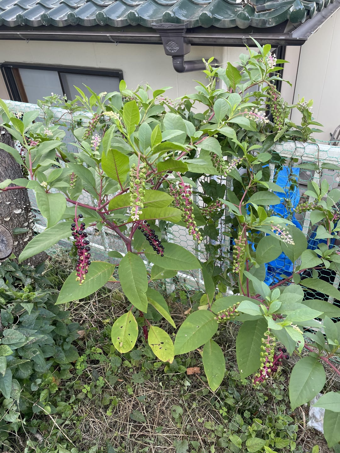 bluish1997 2 years ago American Pokeweed – Phytolacca americana The berries are poisonous and could hurt the dog. Also I’ve identified a lot of pokeweed but this is my first in Japan!