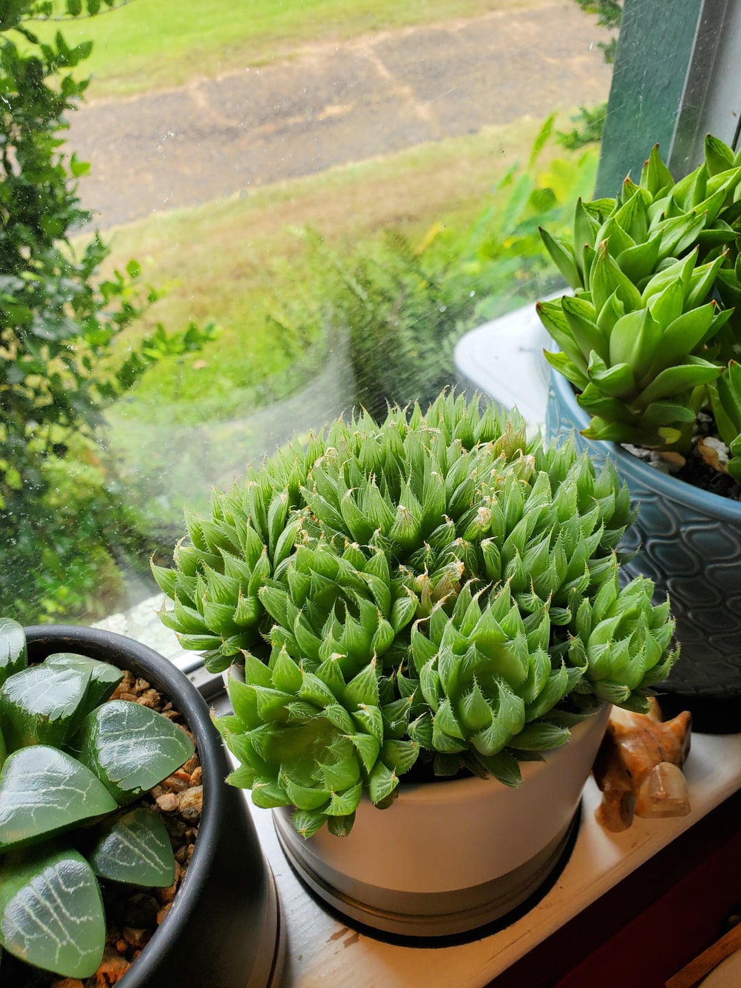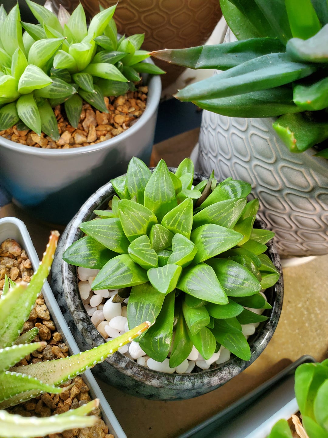 Beautiful! As a brand new Haworthia owner (mine is haworthia cooperi var. truncata), can I ask how you get them to look so plump and juicy and shiny? Mine looks dull and not very transluscent.