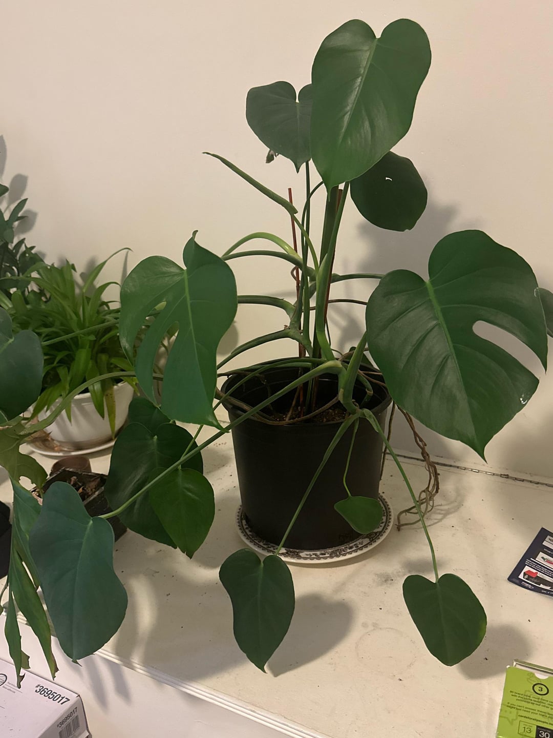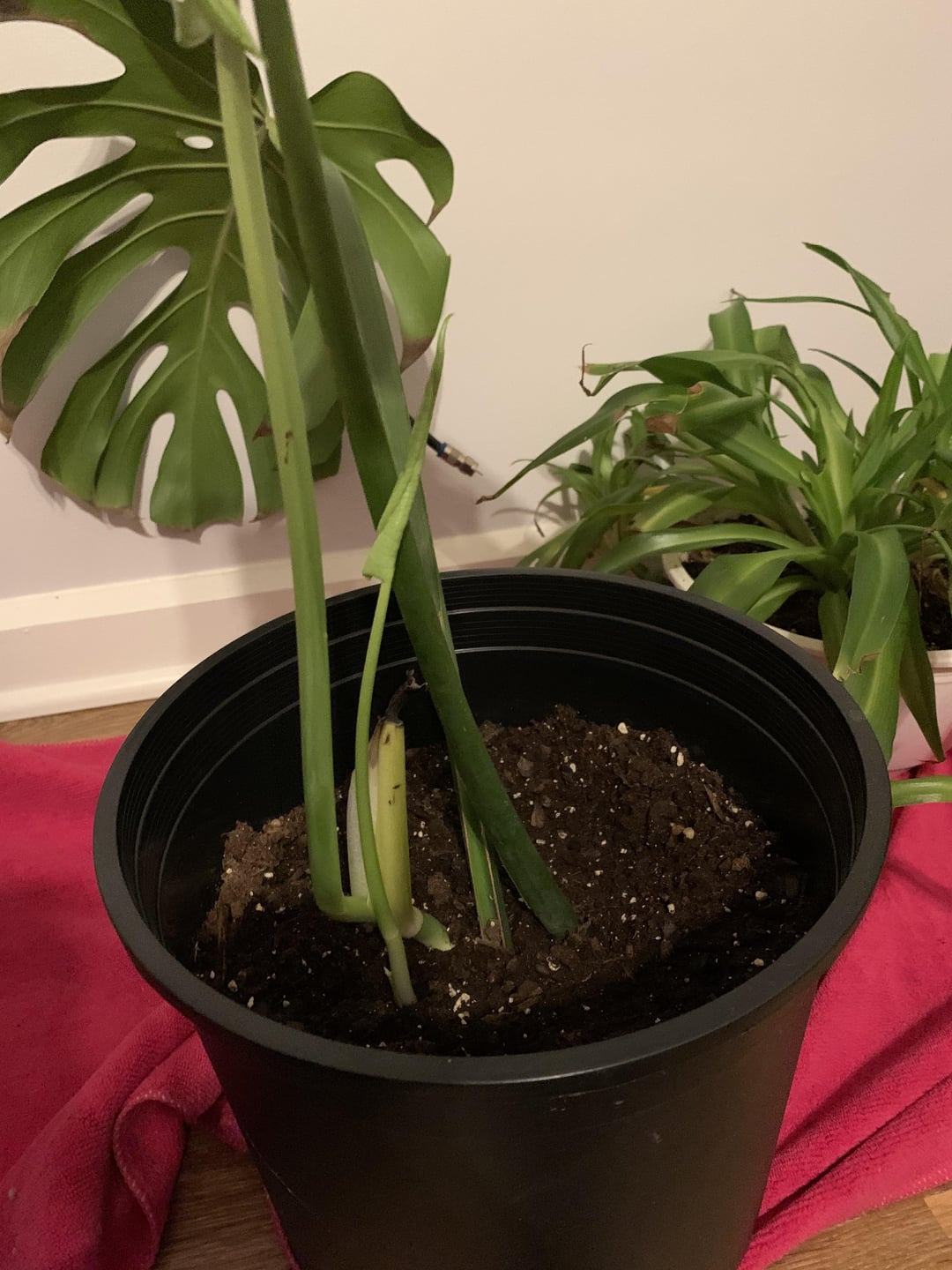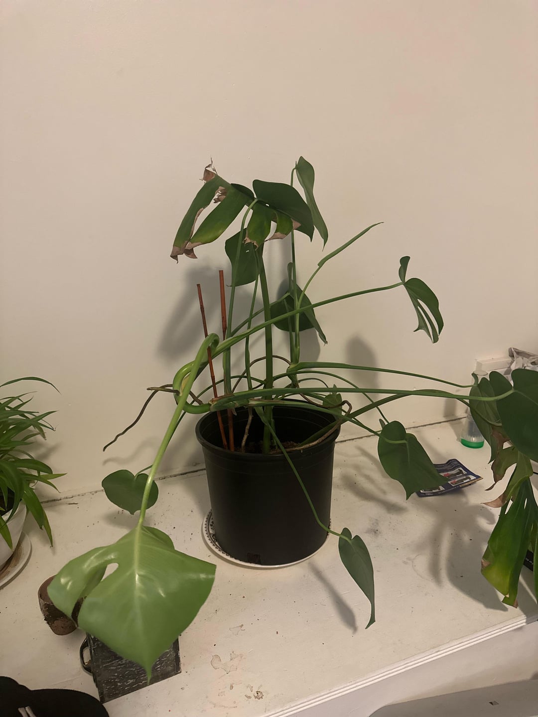 I have neglected this green baby and it has grown in a funky way. Any advice on what I might be able to do to straighten this up? I was hoping to do so with a moss pole and without propagating, but I’m open to any solutions. Otherwise, it’s seems healthy with recent new growth pictures. (Also included a photo of the sprouts these grew from back in October of 2020)