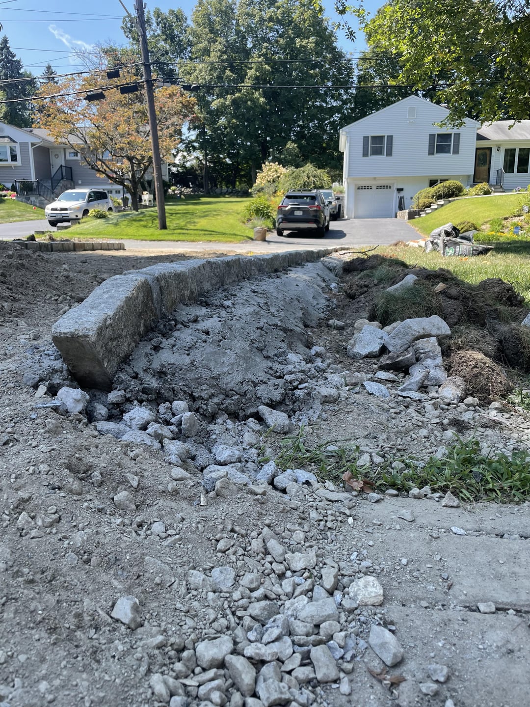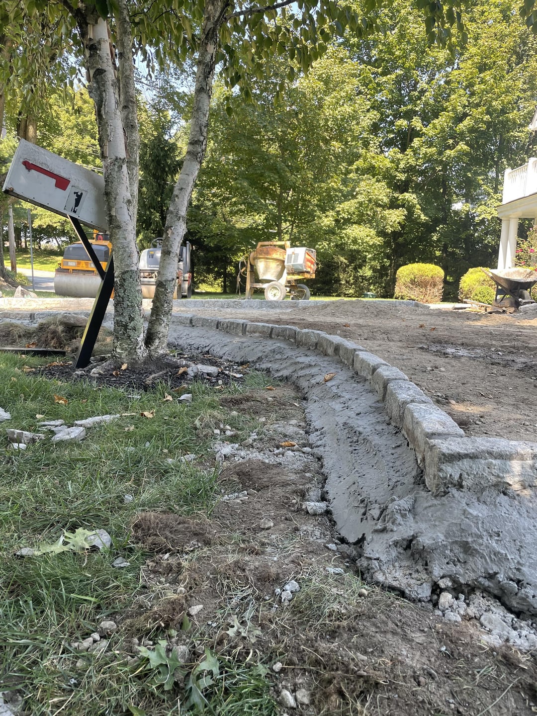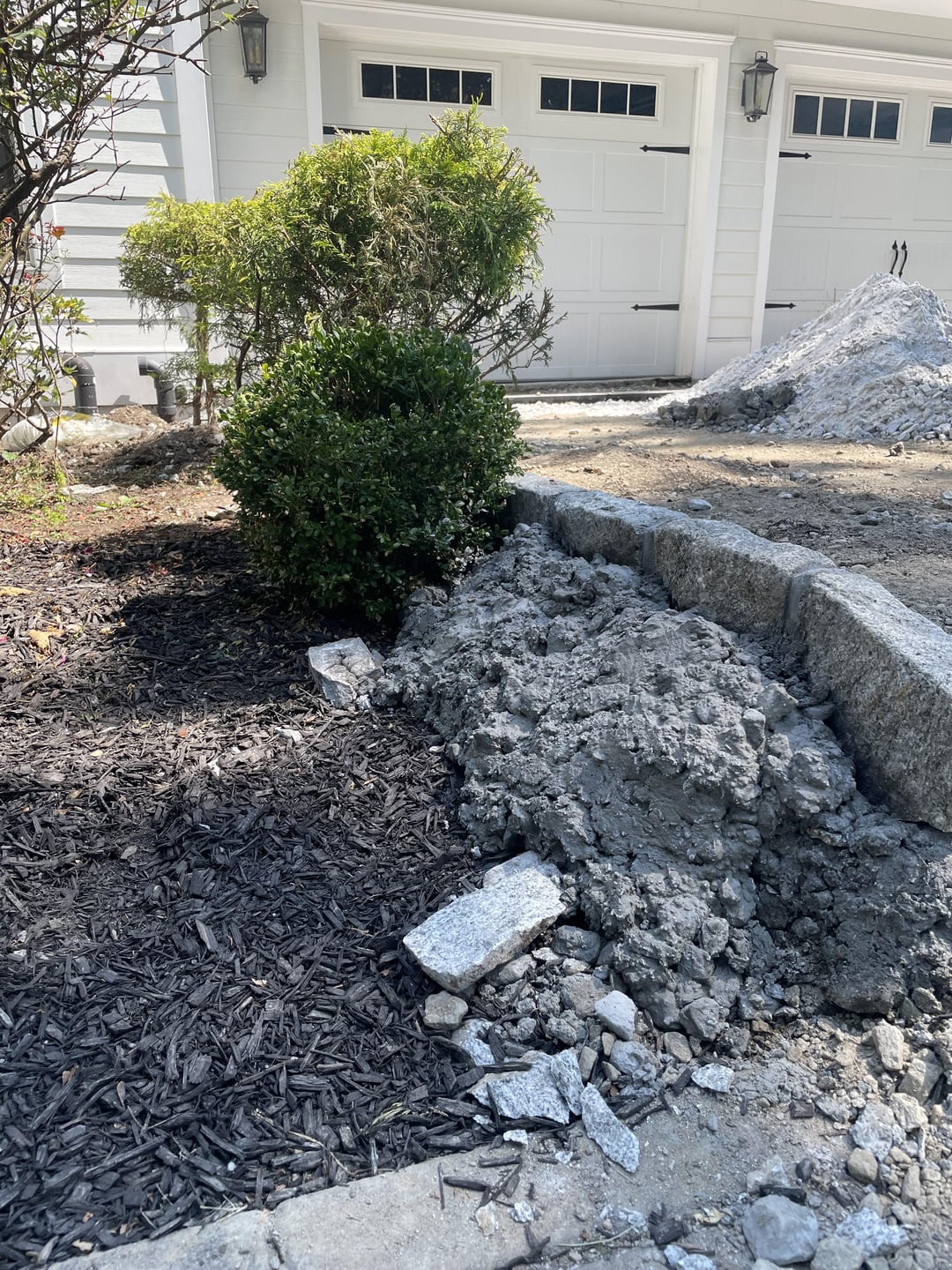 Like the title says, I’ve had some issues with flooding in the house due to an old driveway that was directing the water right into the house and some poor drainage. Having the driveway redone to correct the issue and they raised the driveway quite a bit. When they relaid the stonework on the sides they added a ton of concrete. I don’t know anything about this stuff so I’m assuming they had to do that, but I don’t have a clue what I’m supposed to do with it now.
