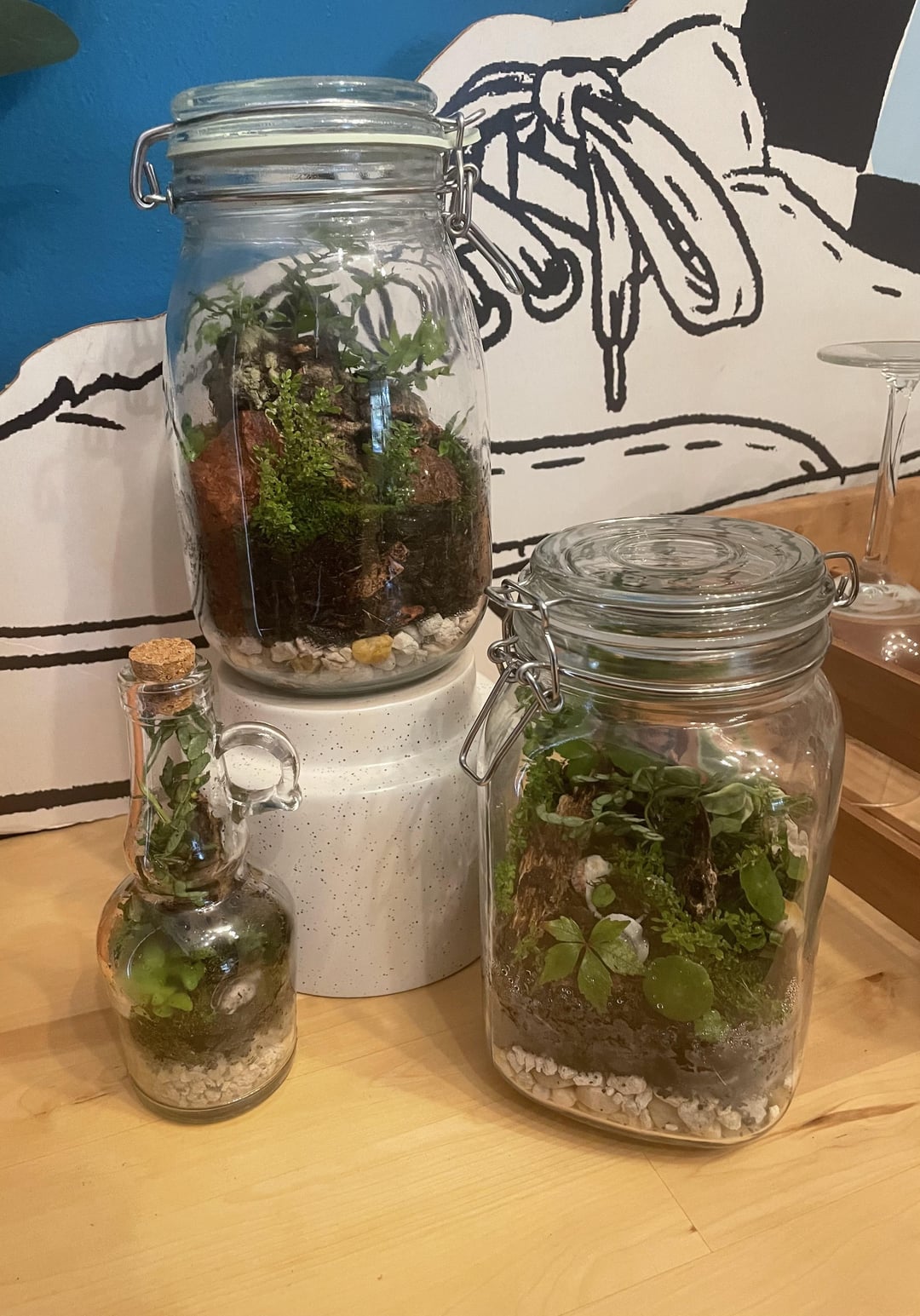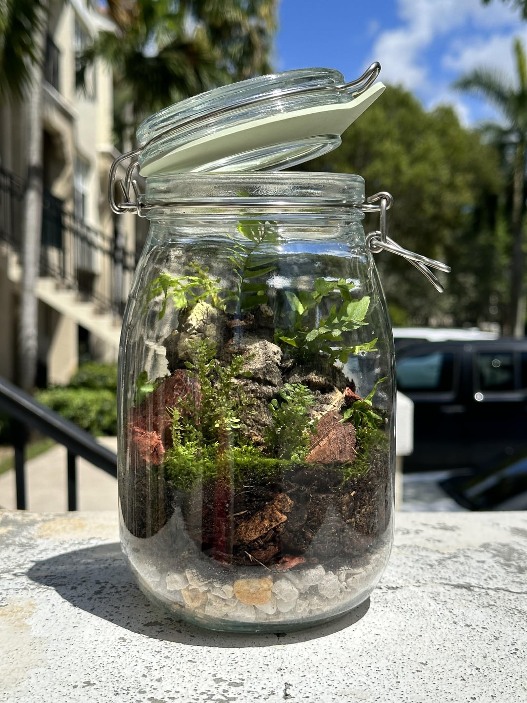 We foraged all of the plants from our front yards, used stones and shells we had. And we purchased a large piece of cork wood that we broke up smaller. For the plants we’re located in South Florida but idk what any of the species are🤷🏻♀️. Let me know what y’all think, also any tips and suggestions are more than welcome 😊💛