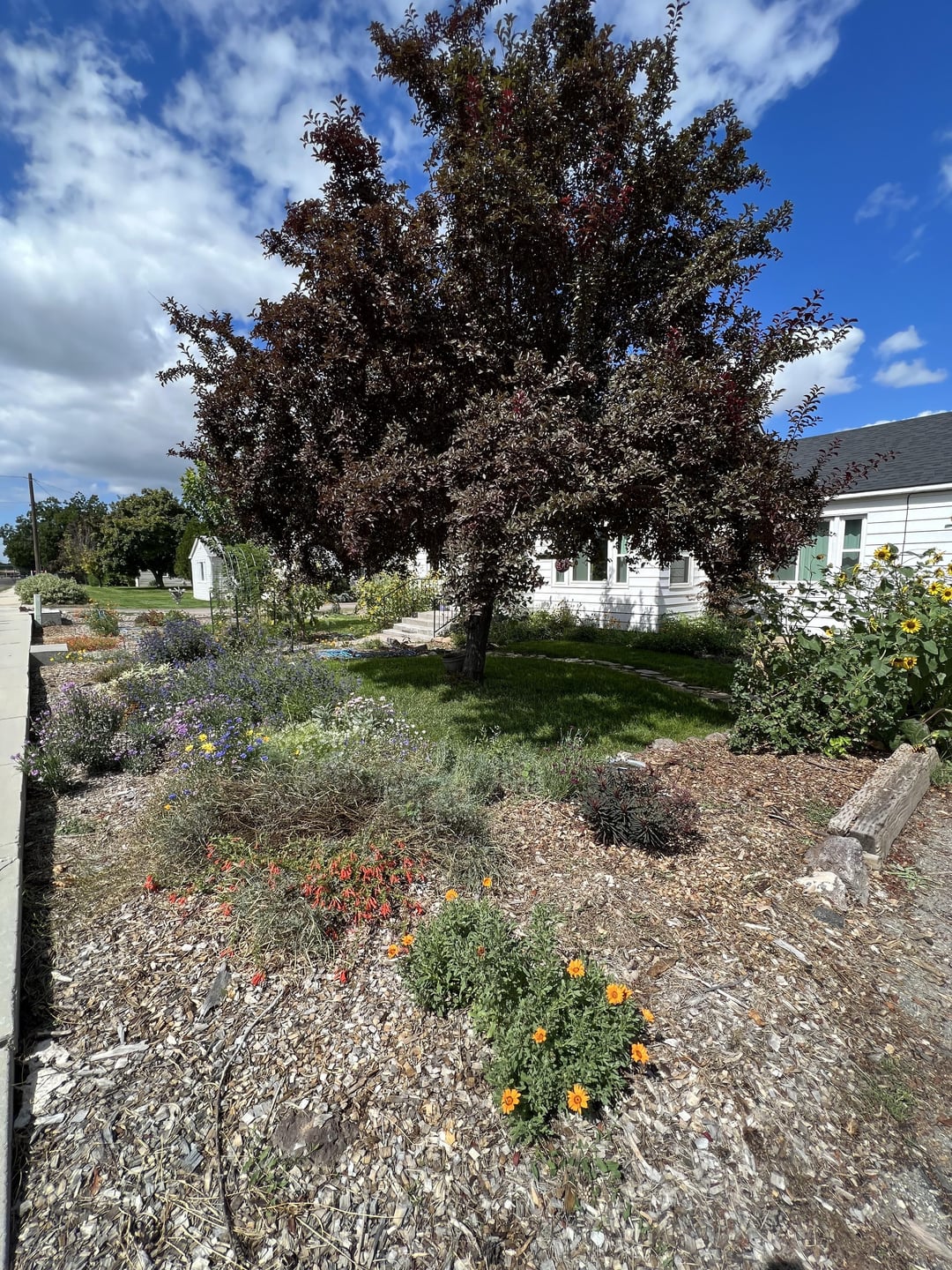 You could add plants that are taller or lean into the little house on the prairie by adding shortish bunch grasses where there’s room. Away from the house is a sunny grassland and close in it’s a shady refuge.