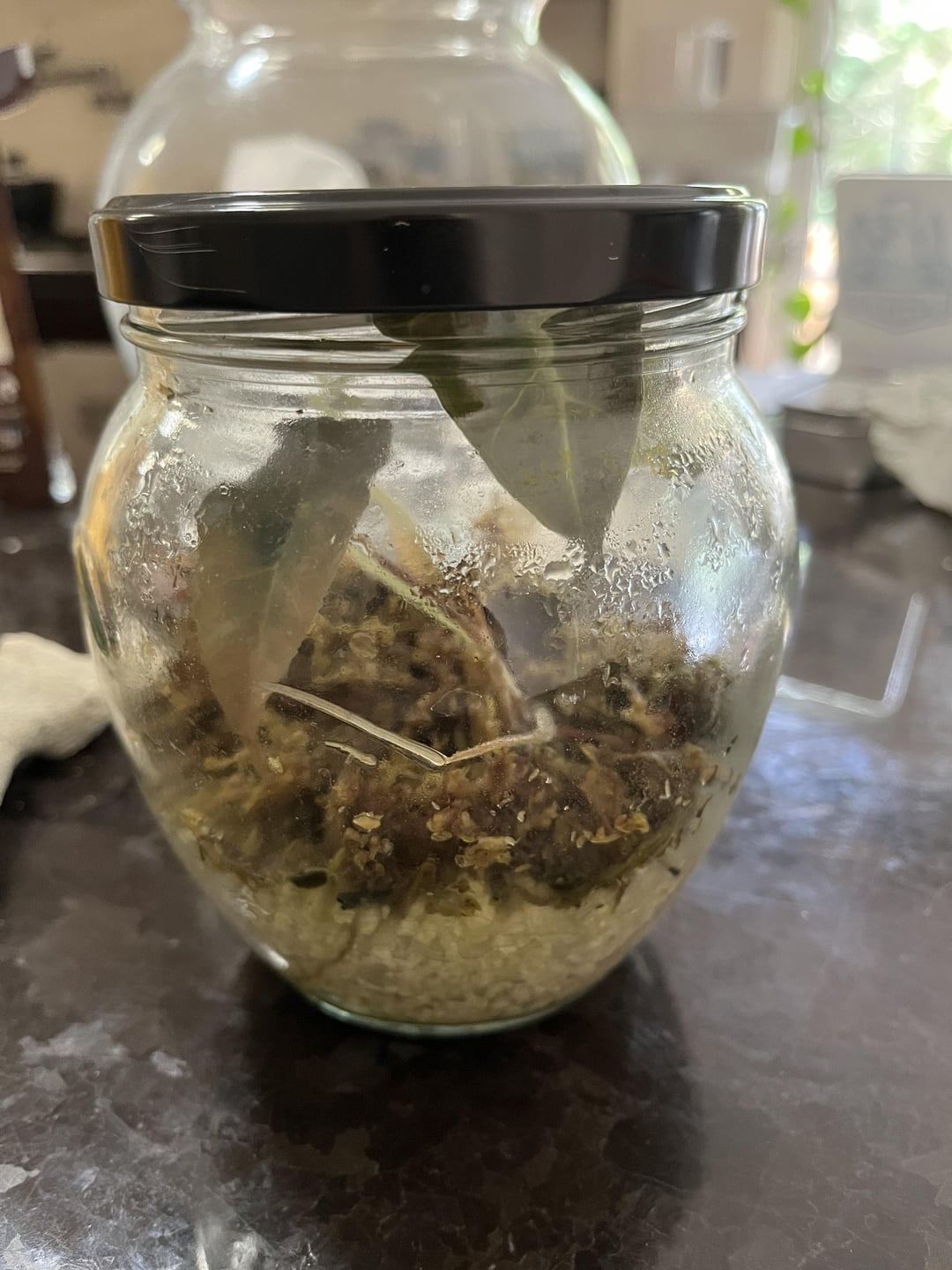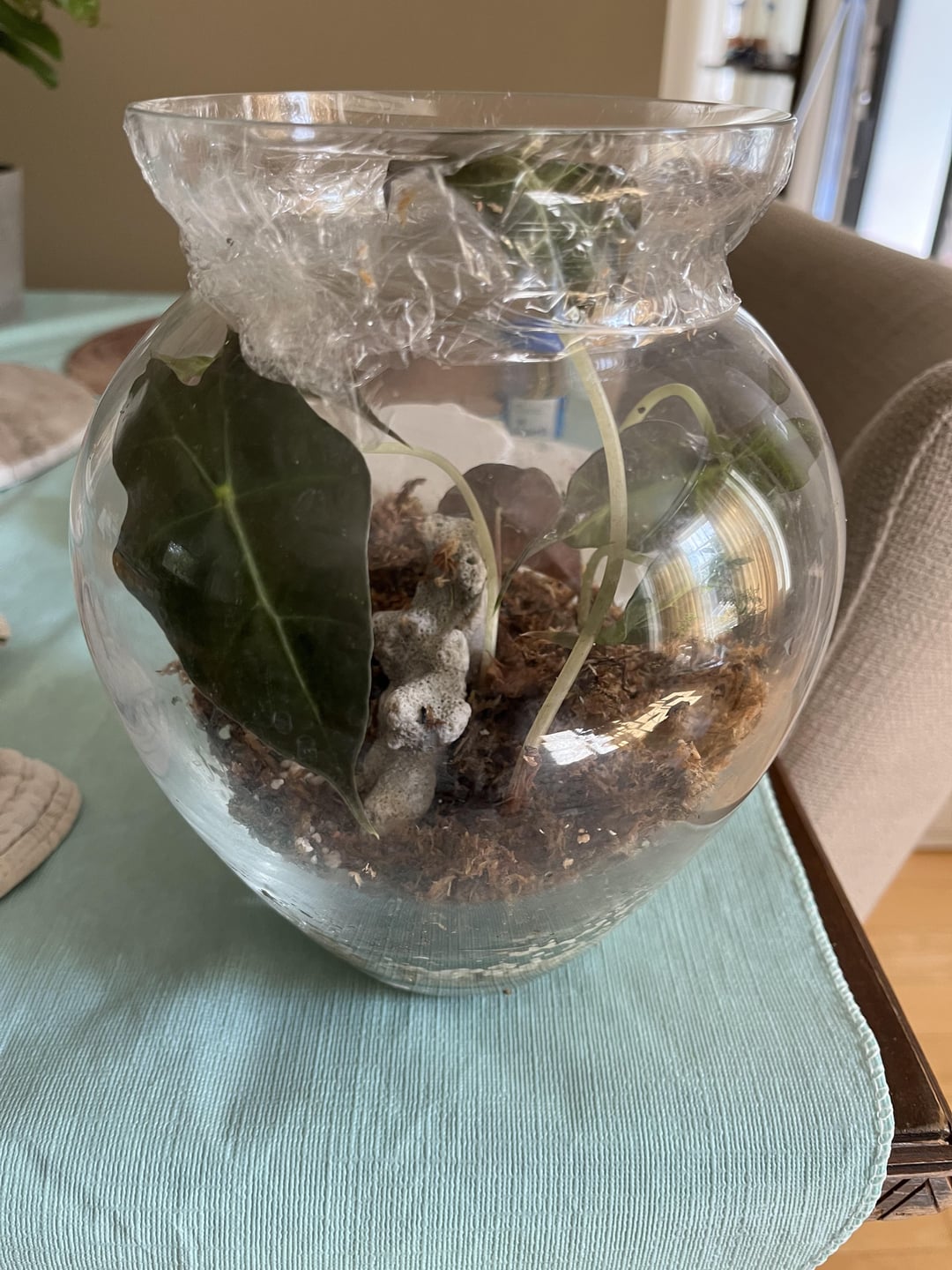 The terrariums have perlite and enough water to cover them, plus moss that had been soaked for an hour or so. I open the jar once a month or so for air flow.