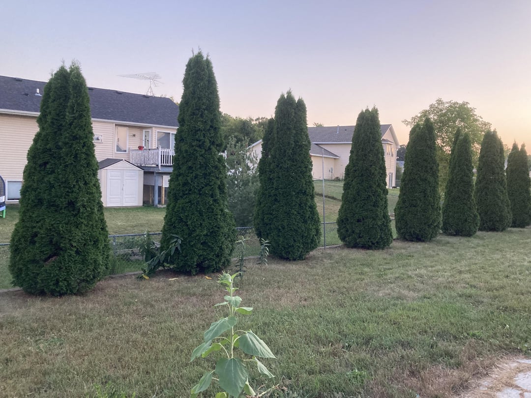 Tear out the arborvitae and get a nice fence those suckers are nasty when they get huge.