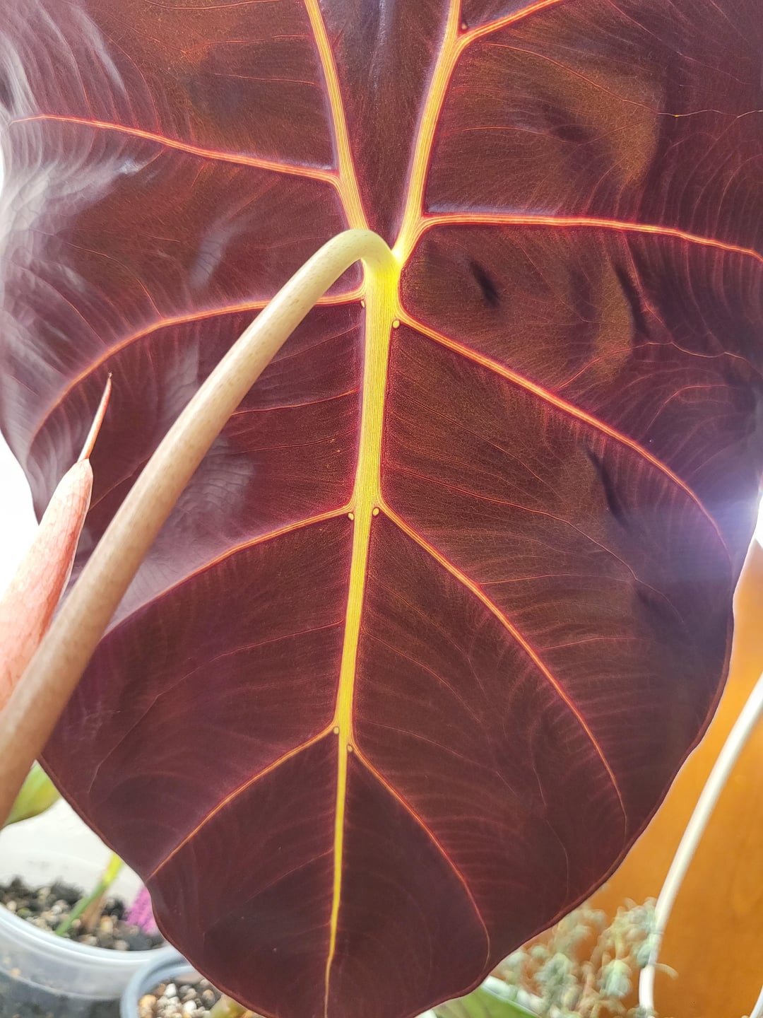 Photo 2: underside of black velvet leaf (notice no spots by the main vein)