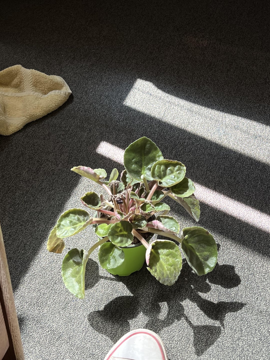 I just bought this African violet today (I moved it out of direct sun light, just wanted to get pictures) and it looks like it’s struggling 🙁 . I bought it for an extra credit assignment, but I genuinely want to grow one! The more videos I watch, the more I get overwhelmed on how to care for it. I live in a dorm, so I’m assuming it might be a bit tricky on caring for it, but I’m not going to give up.