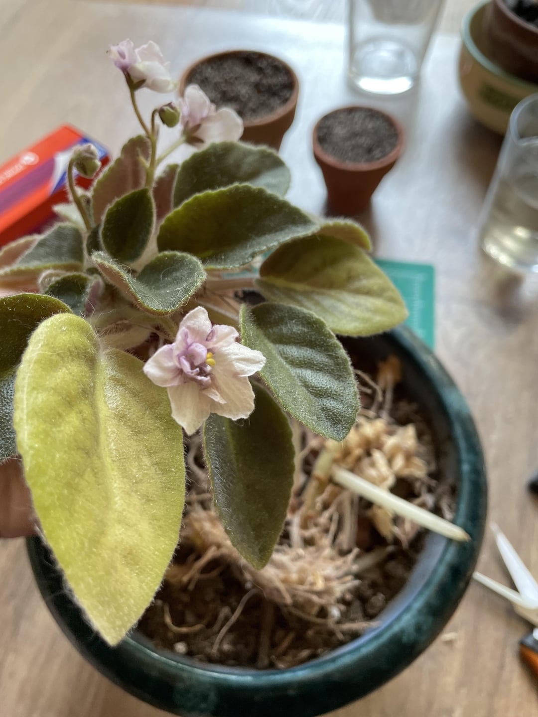 I did it. I decapitated my 20+ year old violet. Please pray for my little friend because it needs it. 😂😭 by Rae_Regenbogen african violets 1 Comment fuzzyfuzzyclickclack 2 years ago Like a pro! Good job, I’m sure it will be fine. Keep in mind that terra cotta loses moisture faster than plastic pots so you’ll have to be careful not to dry out too much until it’s well established. Write A CommentYou must be logged in to post a comment.