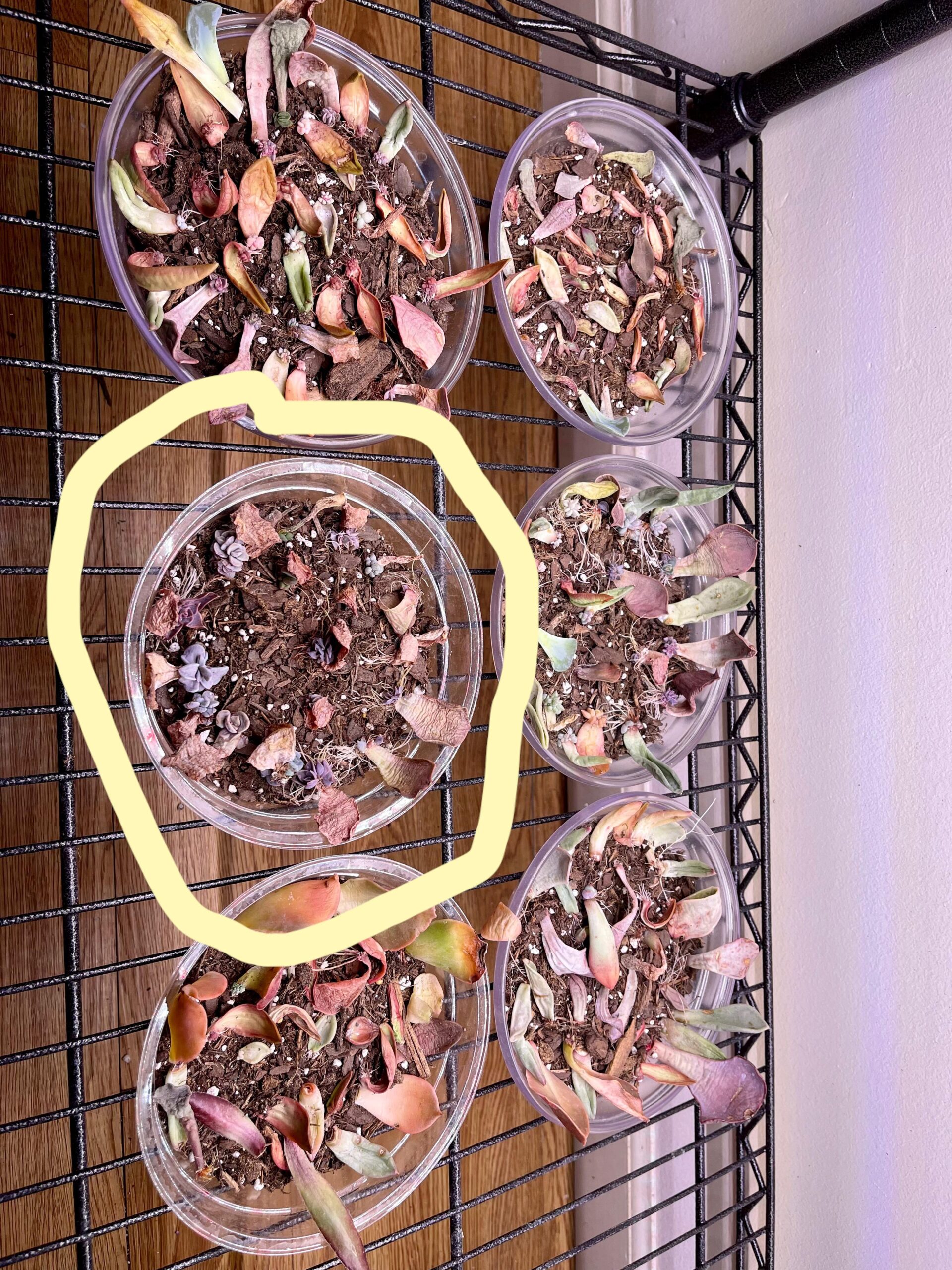 Specifically the tray where all the leaves are throughly vampired out. I saw somewhere that you still shouldn’t truly plant them until their roots are @ 2” long though. The other trays where the leaves still have juice left I assume I should leave until they’re husks too.