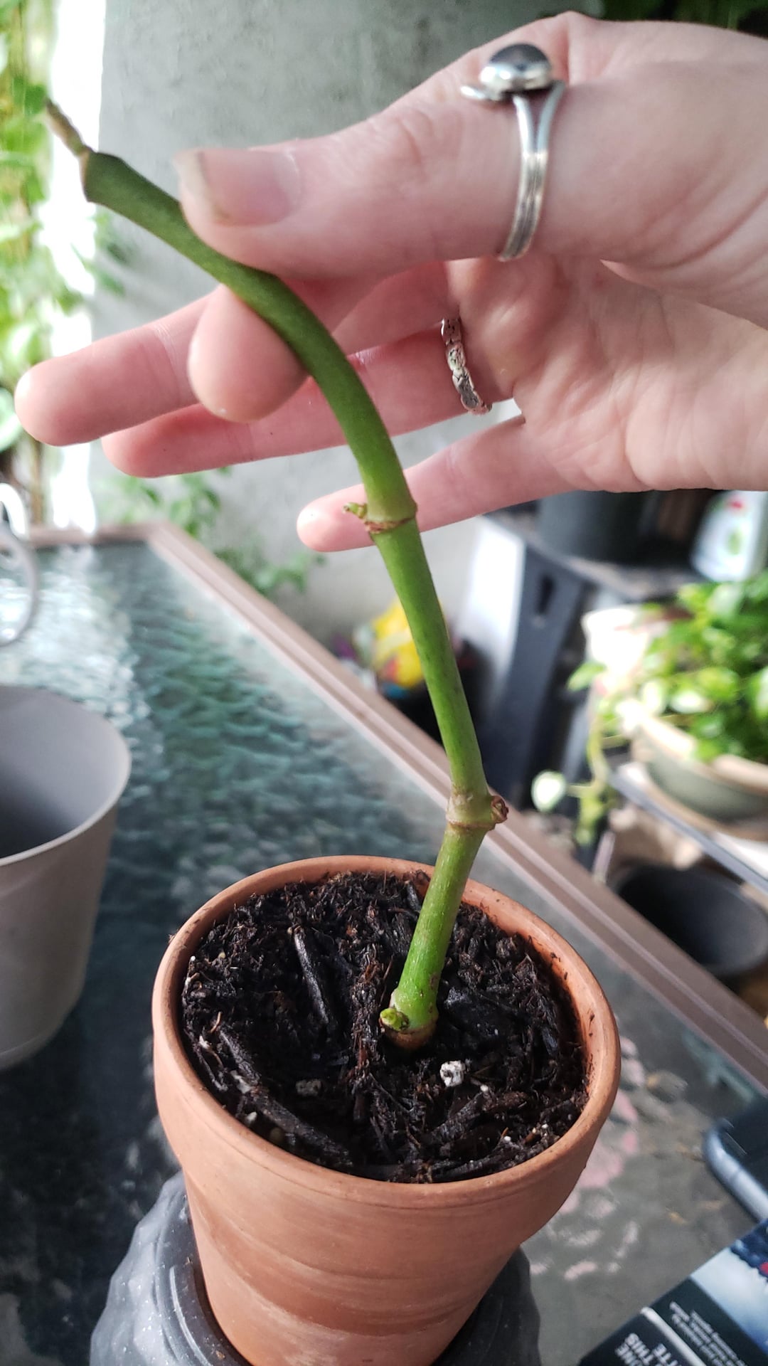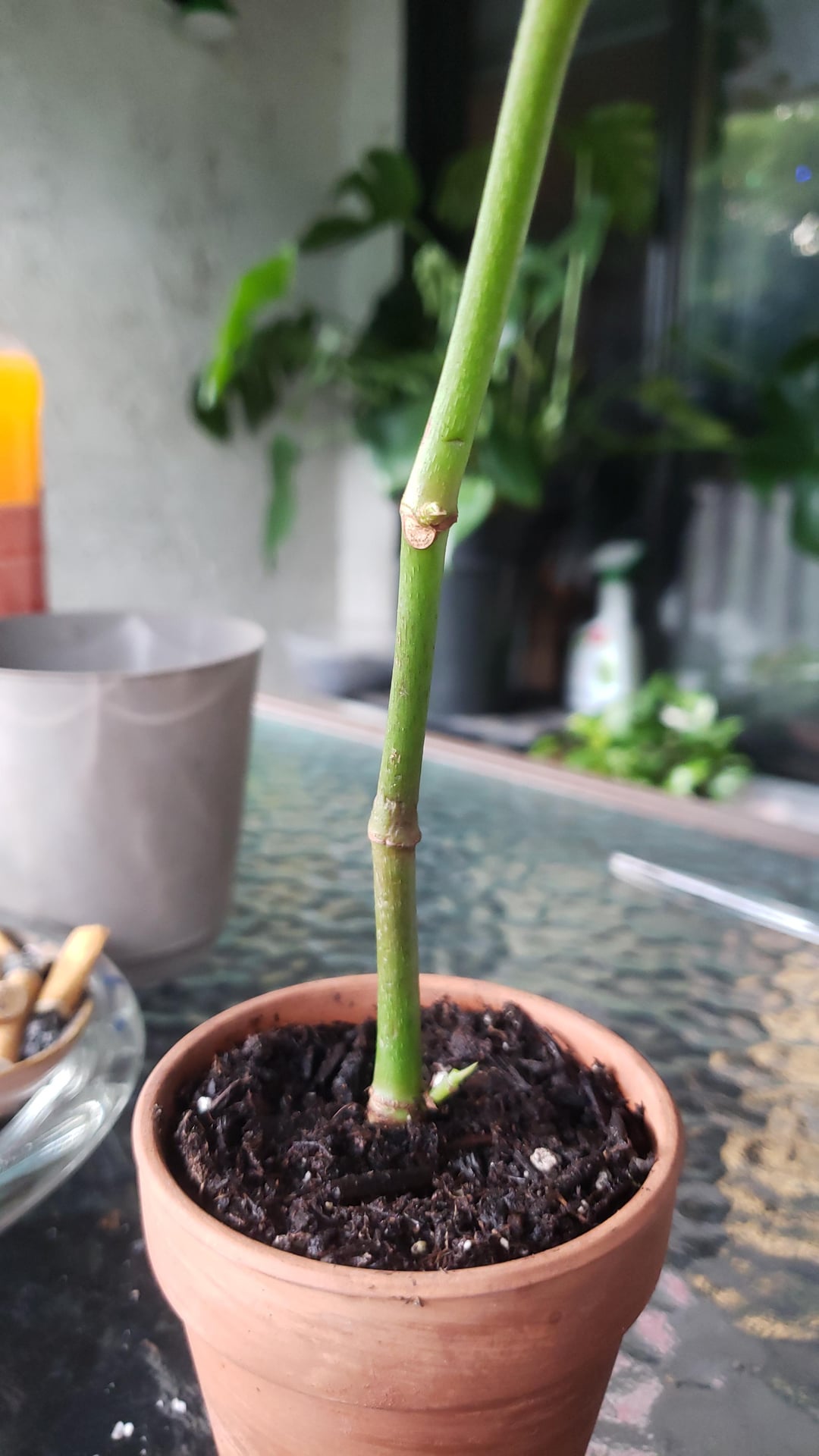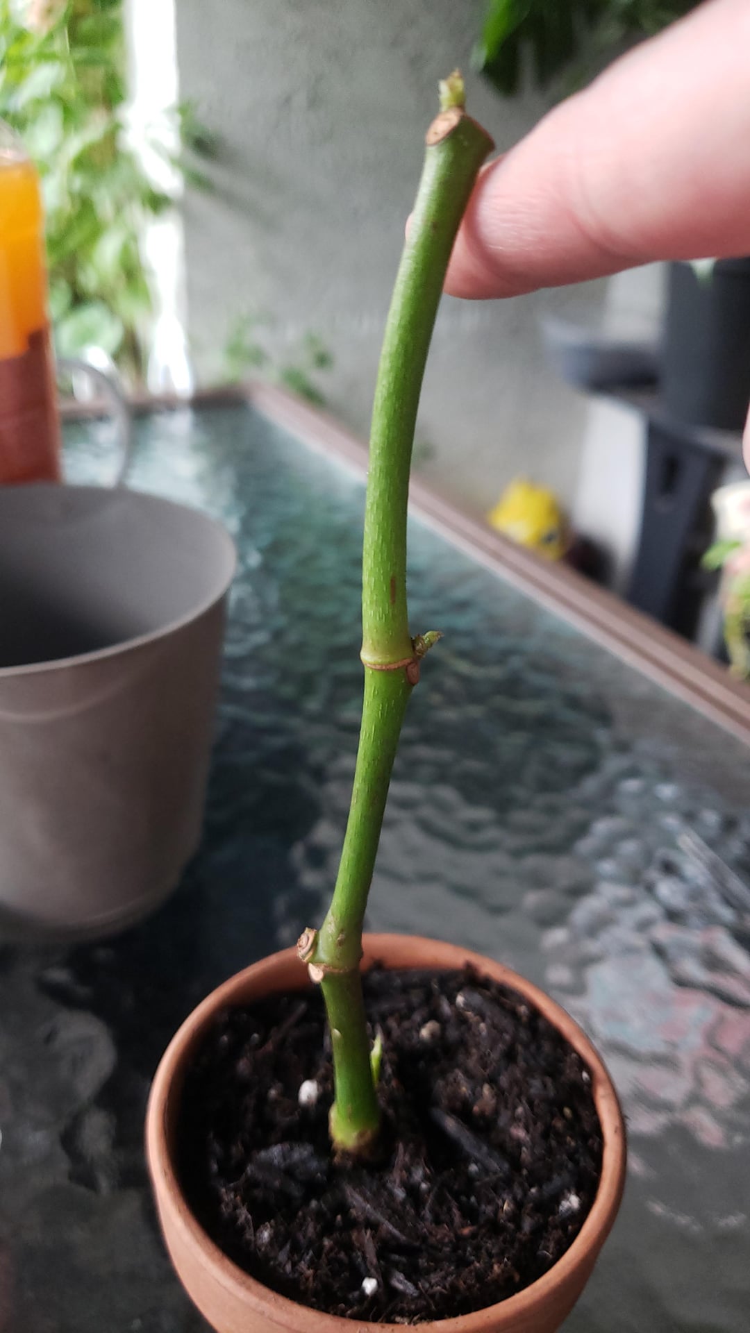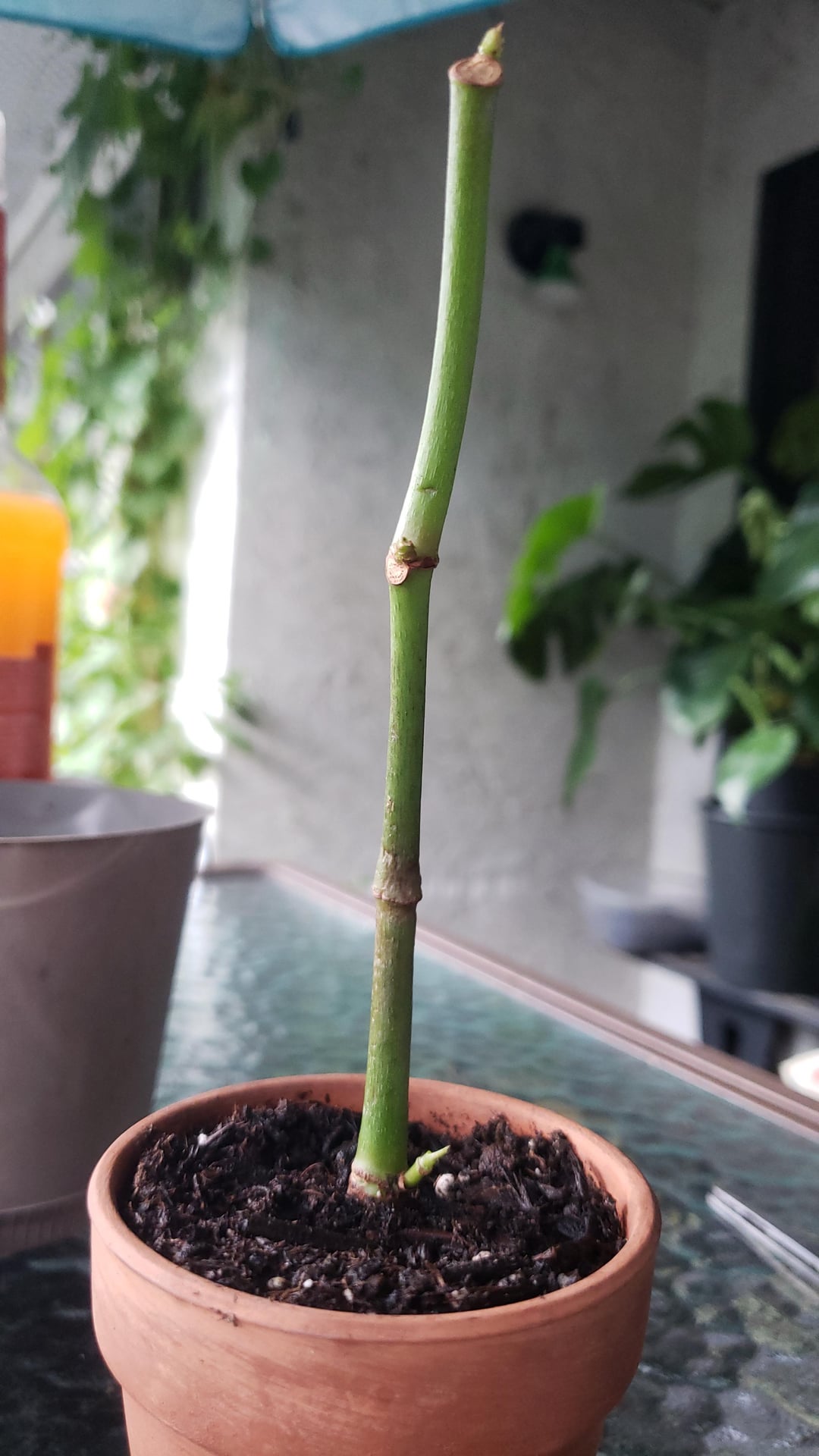 As you can see it’s very soft on the cane at the first point from the bottom, very bendy. I thought maybe chop and prop? But with the new growth points on the top, I wasn’t sure if the softness on the cane is something that could be reversed.
