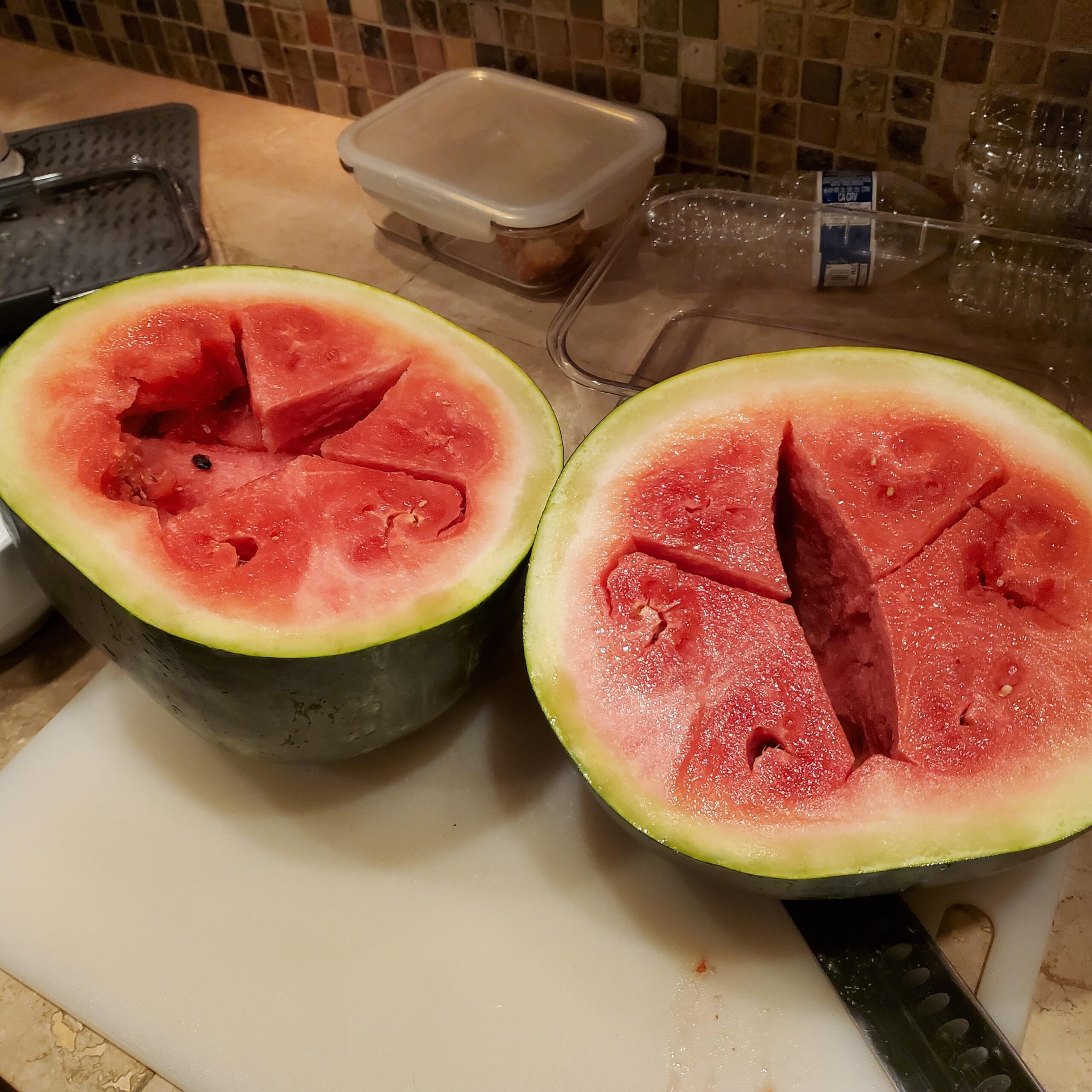 That’s the best kind watermelon. Due the reduced amount of water it is usually sweeter and snappy. It’s the one that the old ladies are looking for when they are knocking at them in the market hoping for that hollow sound response.