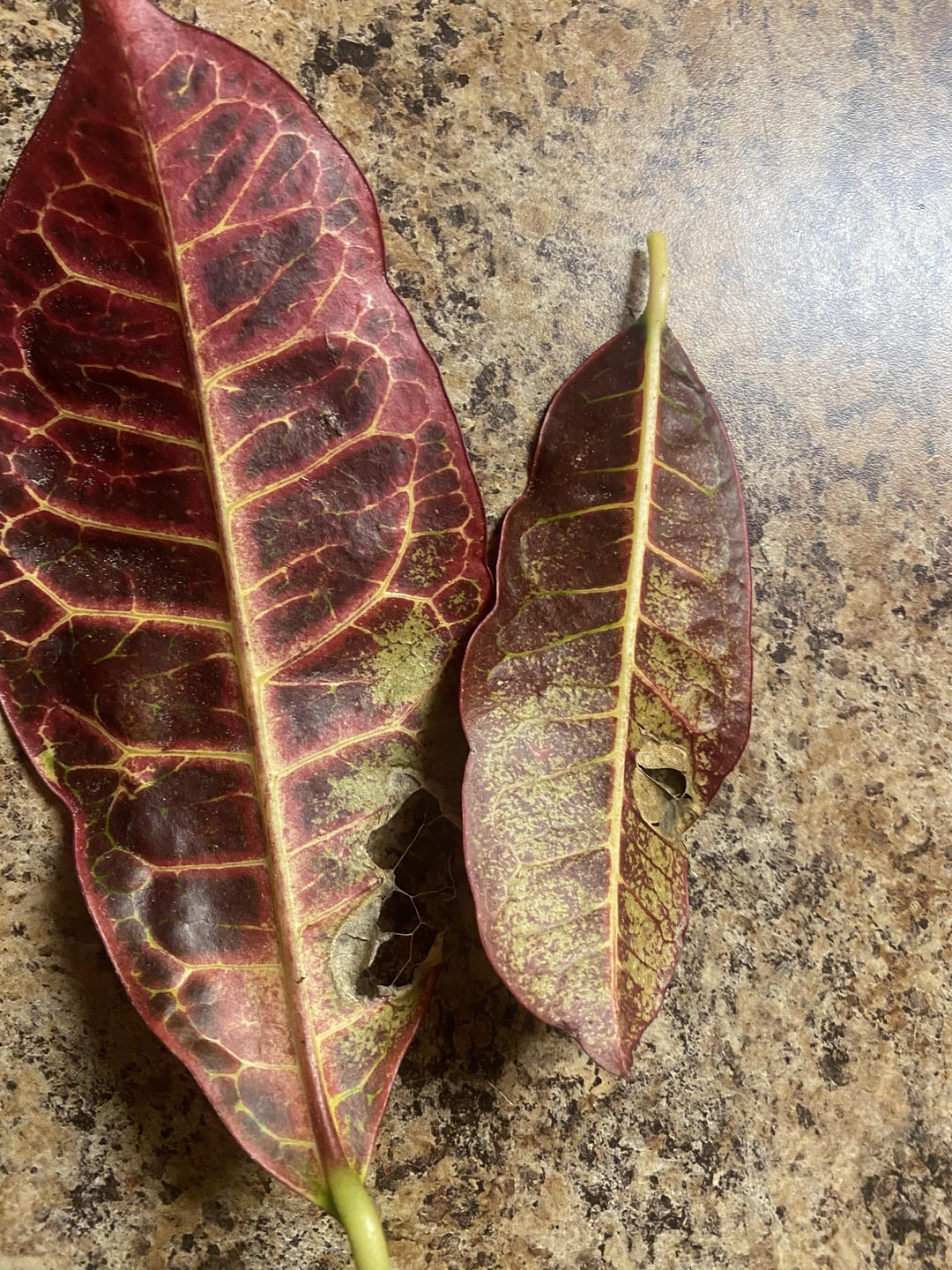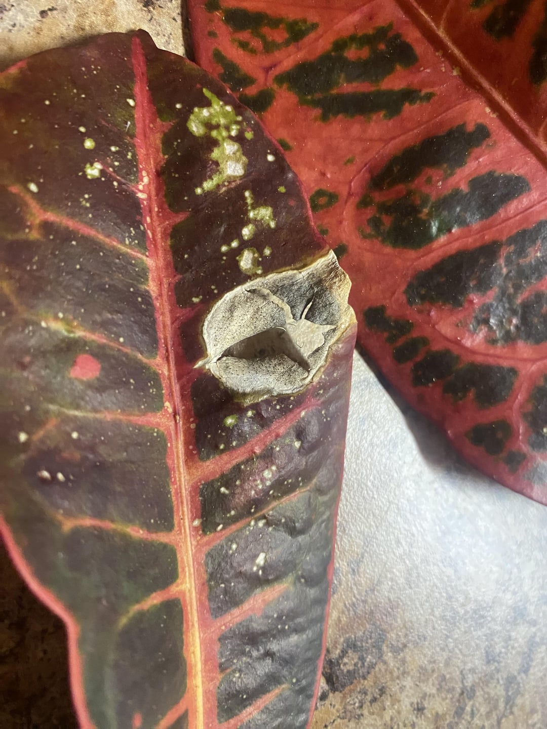 A couple weeks ago I posted about this croton dropping leaves after I moved it, now wondering if it was something else all along.