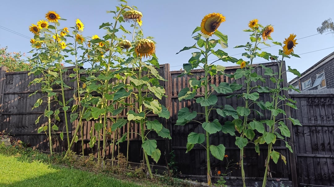 First post on Reddit and I just wanted to show off my sunflowers 😊. There’s 17 individual plants here, a few were on the other side of the garden but I let the slugs have those ones. Most of these were purposefully planted but a few have popped up from seeds that I just chucked in the ground. I think next year I’m going to try to grow a few different varieties so you’ll probably see those in my 2nd Reddit post, see you next year 😁.