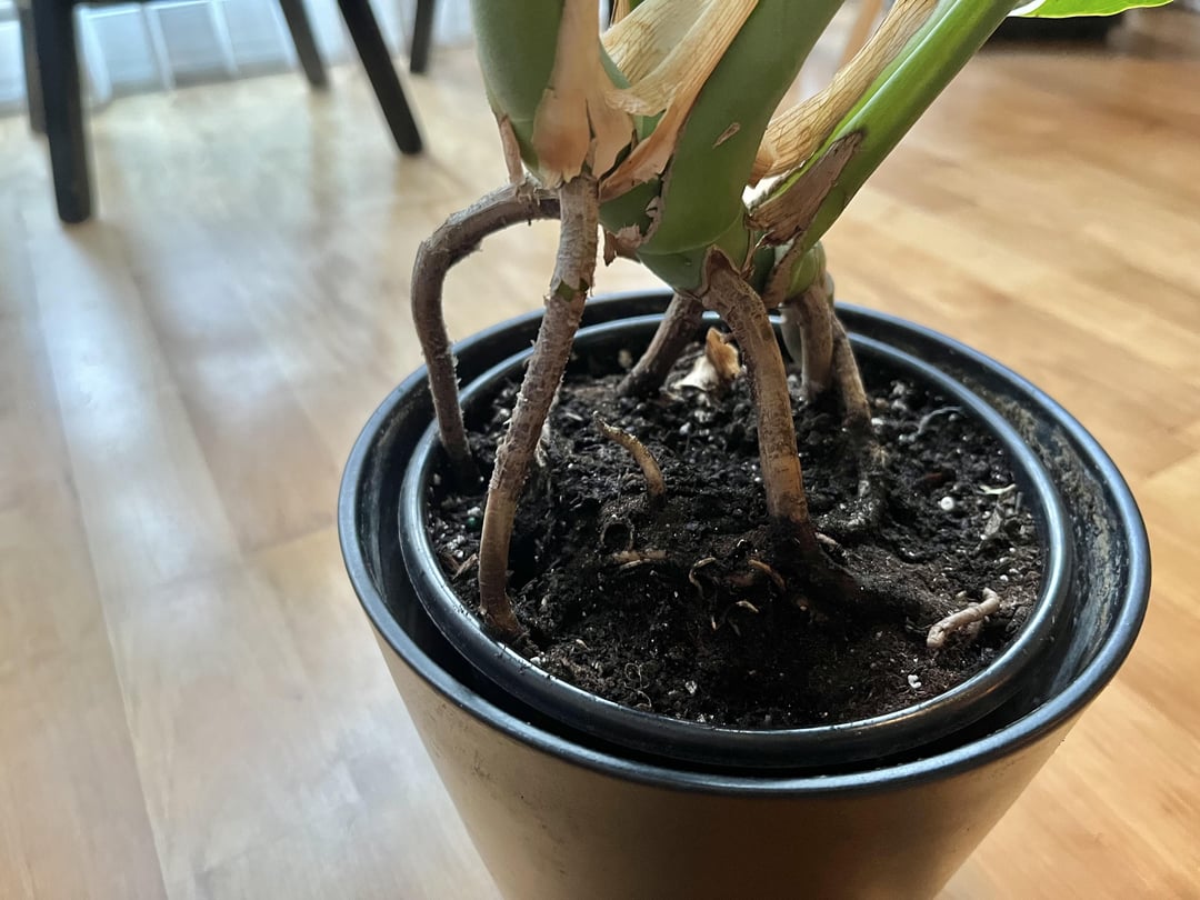 I prop’d this from the mother plant not too long ago, and got a good tip to use the air roots as support!