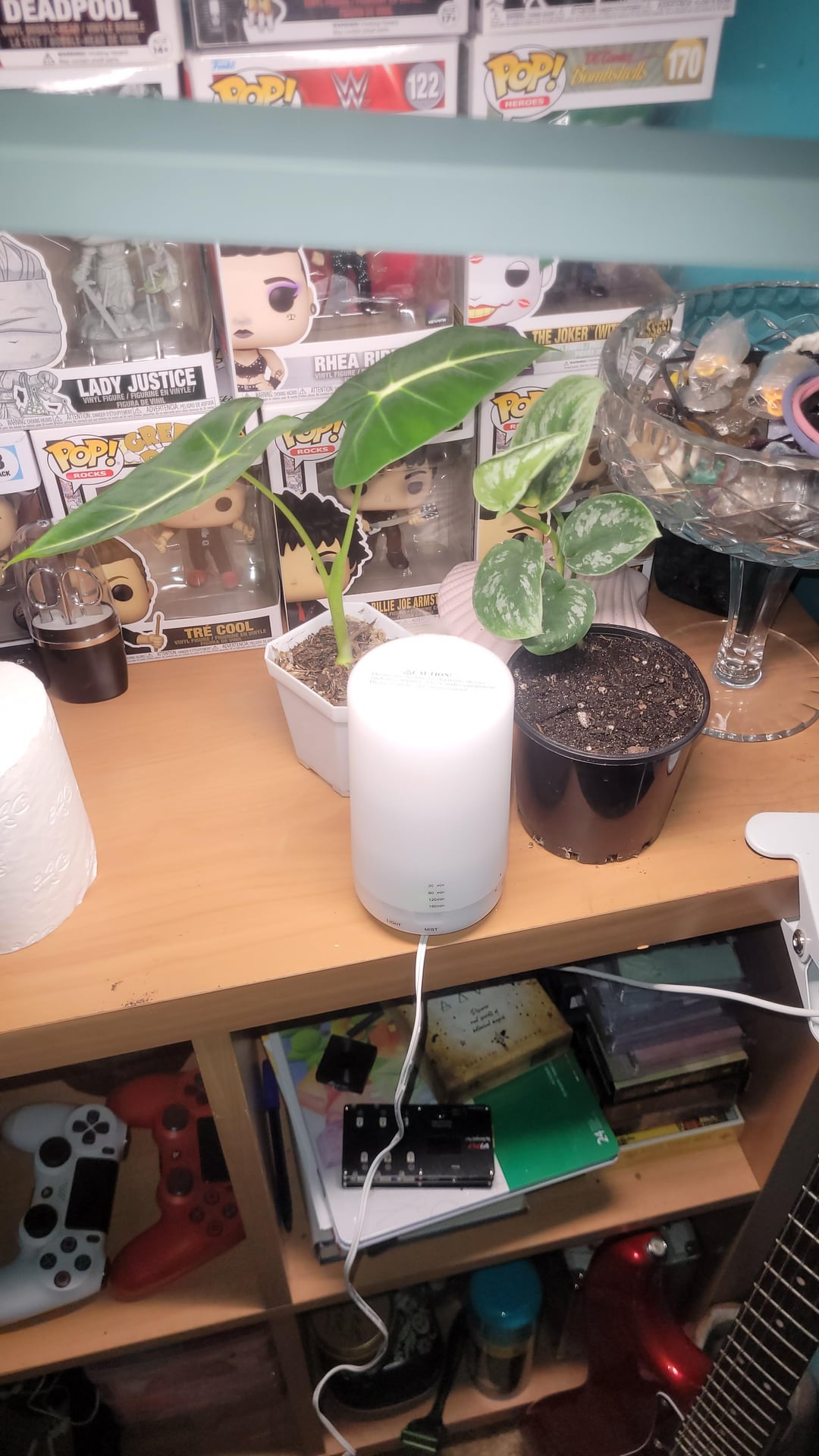 – little humidifier for 60 minutes twice a day and about a pot away when on