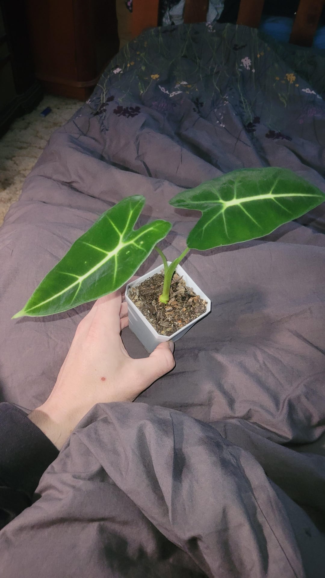 Also has two roots starting to come out of the pot but a bit anxious about repotting as I know these pups like to be rootbound