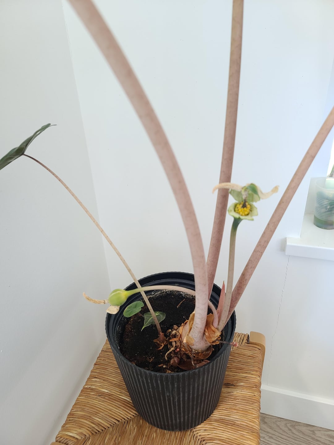 Honestly looks like a seed pod! I’ve had alocasias flower and get soo close to producing seeds, but I think I under-fertilized and she overproduction flowers (4 at one time!), so none of them lasted long enough to produce viable seeds. Those look like you could take em and get seeds to plant!