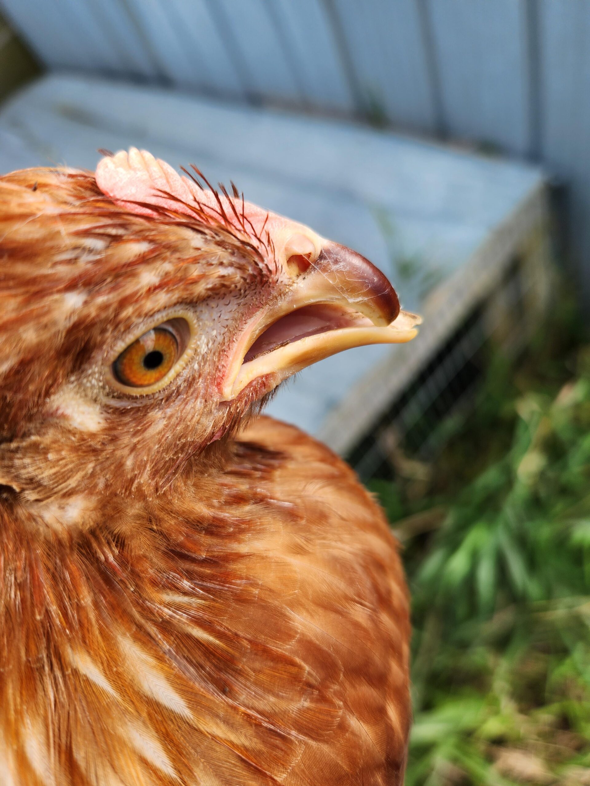 Your chicken was clipped at the beak when it was a baby to stop it from pecking at other birds and doing damage. If it was a layer hen then that’s most likely what it is. Yes it’s fine. Eats and drinks just fine. Did it hurt? We’ll ask a kid who got their ears pierced when they were 1 month old if it had hurt. Answer would be “I don’t know, not that I know of.”