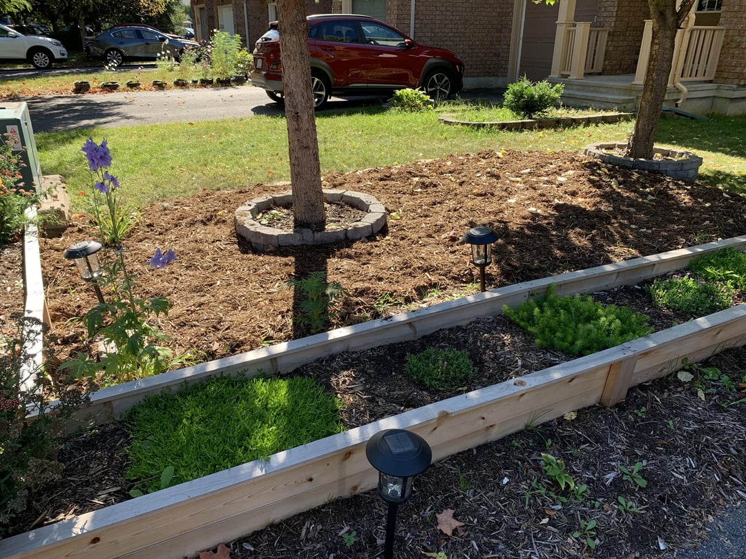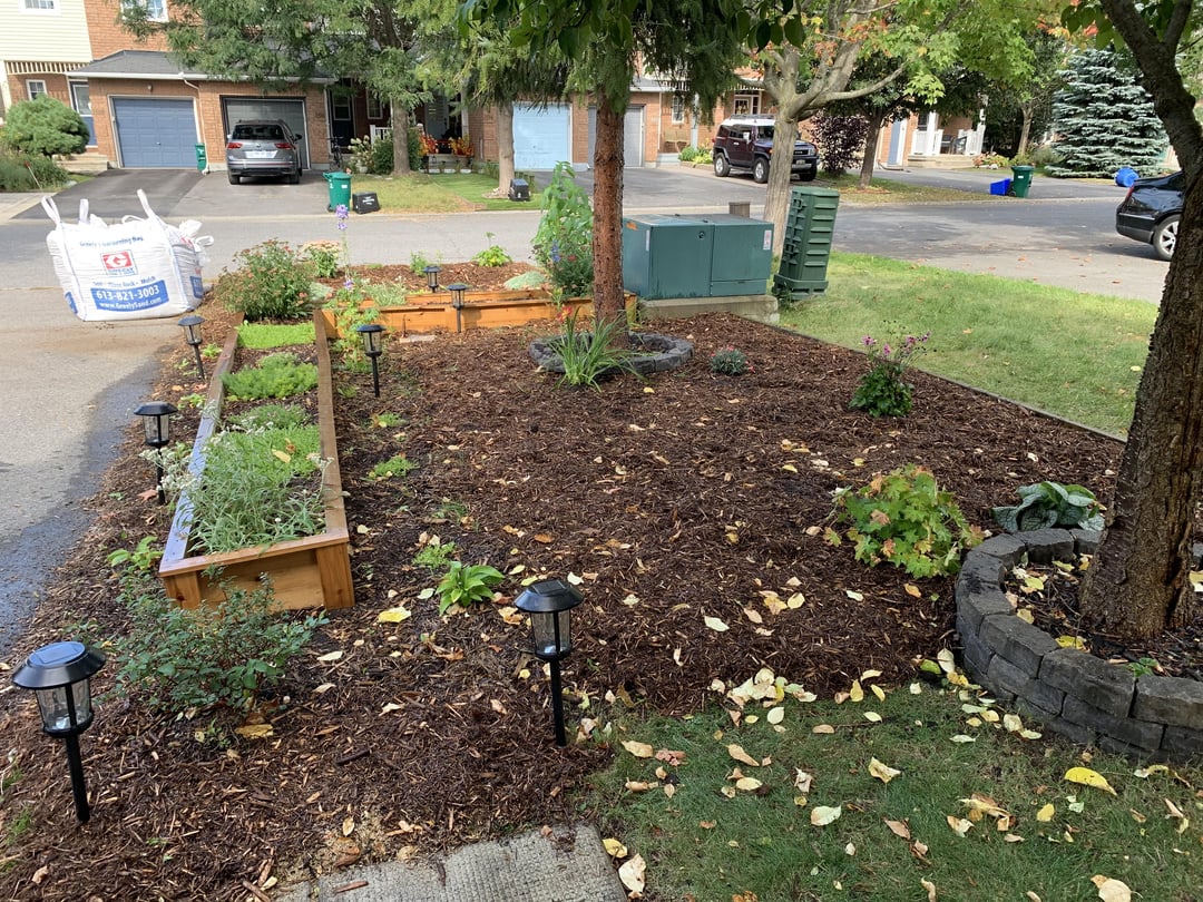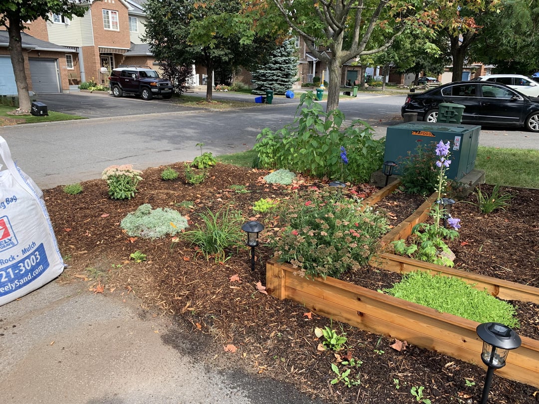 You could add some edible elements that you can use in your cooking. Thyme makes a nice ground cover and sage gets nice and bushy. Chives are also nice and easy and lavender smells great. Sedum is very popular with pollinators. Black eyed Susan’s get 2-3’ tall but flower for a long time and are striking. Some Irises, tulips and daffodils would also be nice in the early spring and you can just place them here and there, or I hear they can help to keep grass from creeping in when placed densely at the edge of a bed. I’d recommend going to Seedy Saturday in the spring. There are lots of cool seed companies and seed exchangers that are there. It’s a good place to talk to local gardeners and try out things that intrigue you. They used to do it in the main building at Brittania beach in February or March I think. I’d also encourage you to check out more local nurseries. The big box garden centres can be convenient, but they have less selection, especially of native plants, and the quality isn’t as high. We always like Ritchie’s Seed and Feed out on Innes when we lived in Ottawa. If you are interested in native plants, the Fletcher Wildlife garden next to the experimental farm/arboretum also has a spring fundraiser where they sell native plants. Looks way better already in my opinion and good luck!