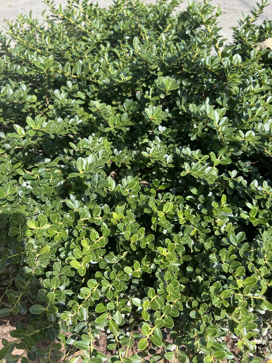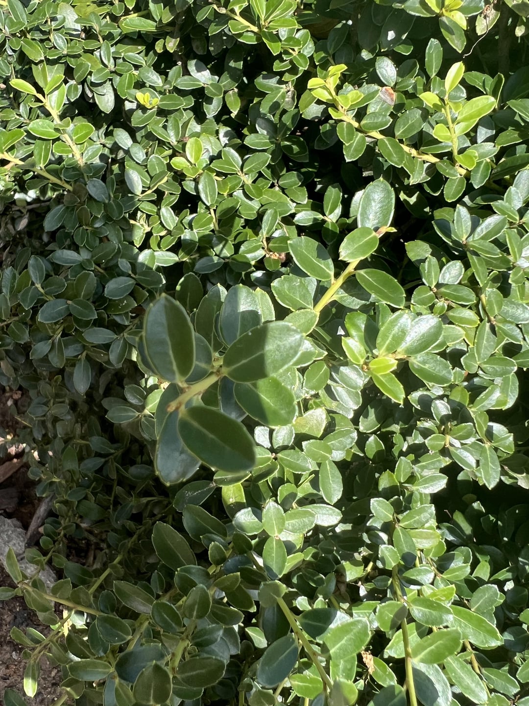 Zooming in on the edge of the leaves on the 4th photo, it looks like the leaves are scalloped and not completely smooth. I think of this more like a soft touch holly than a boxwood.