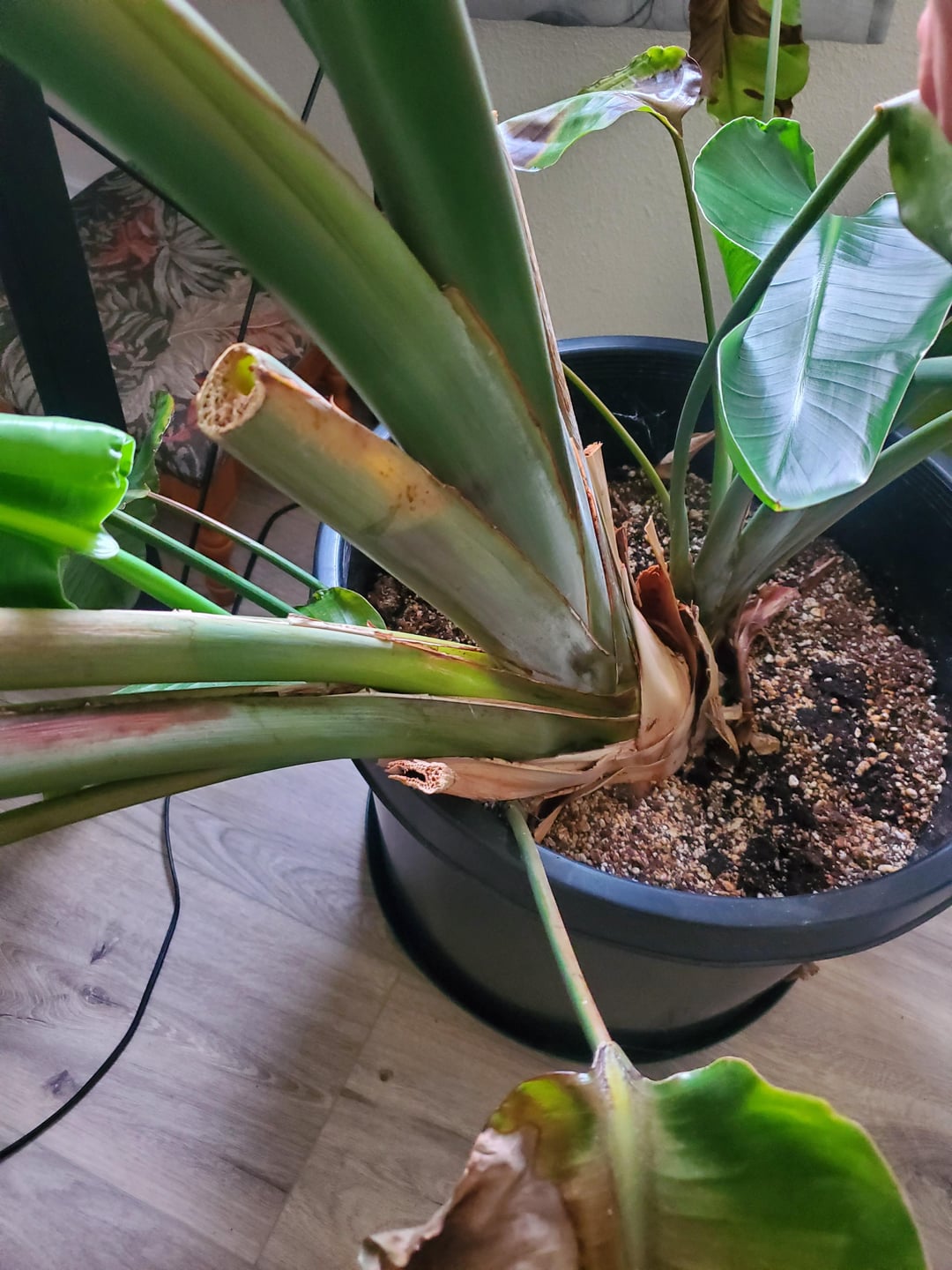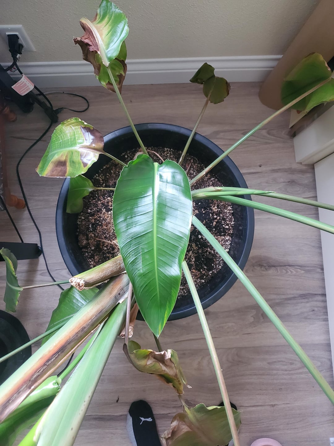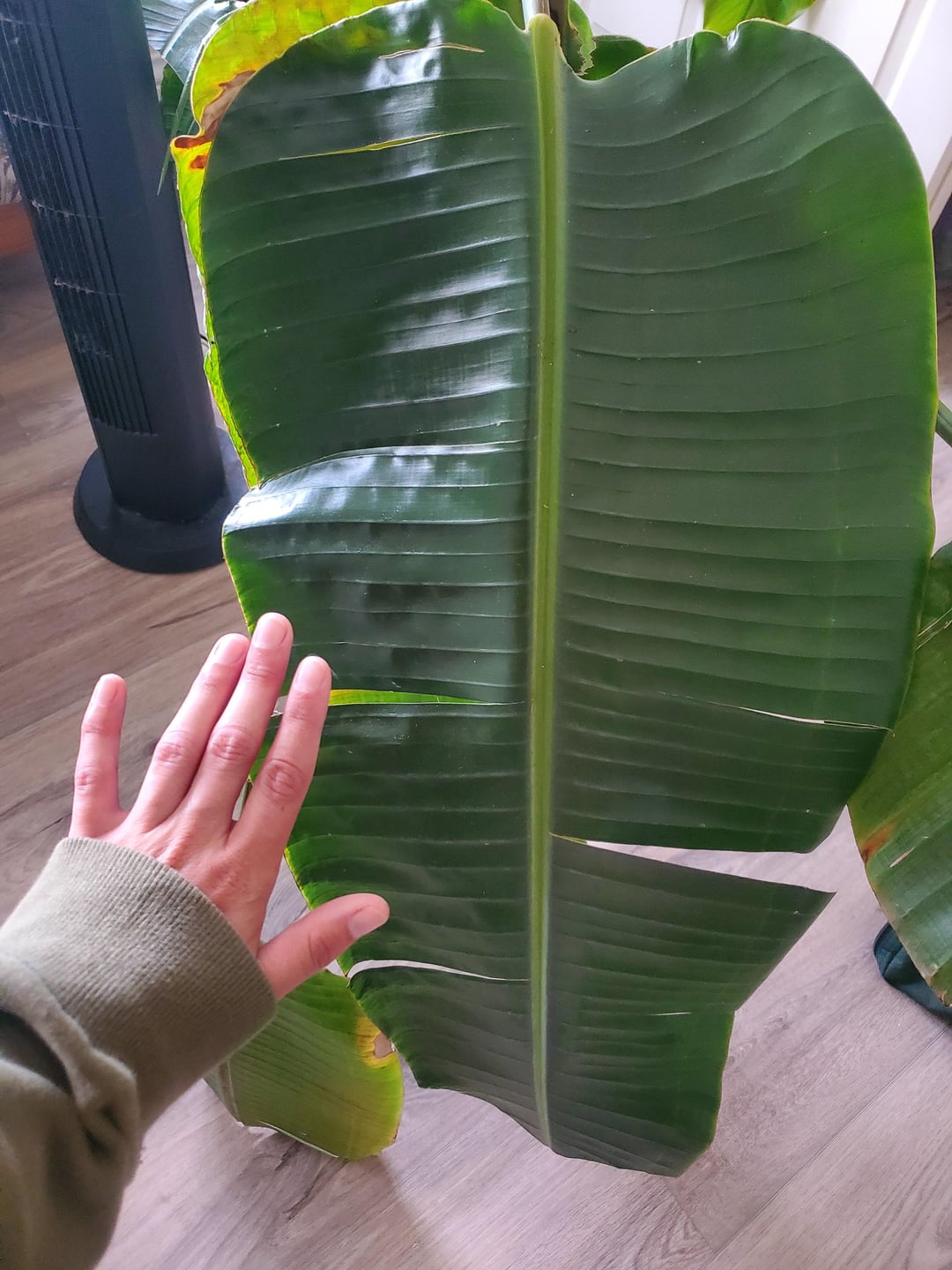 This is a white bird of paradise which will be massive, they’re the larger of the two strelitzia that are sold as houseplants and get 40+ ft. outdoors, good luck brave soul