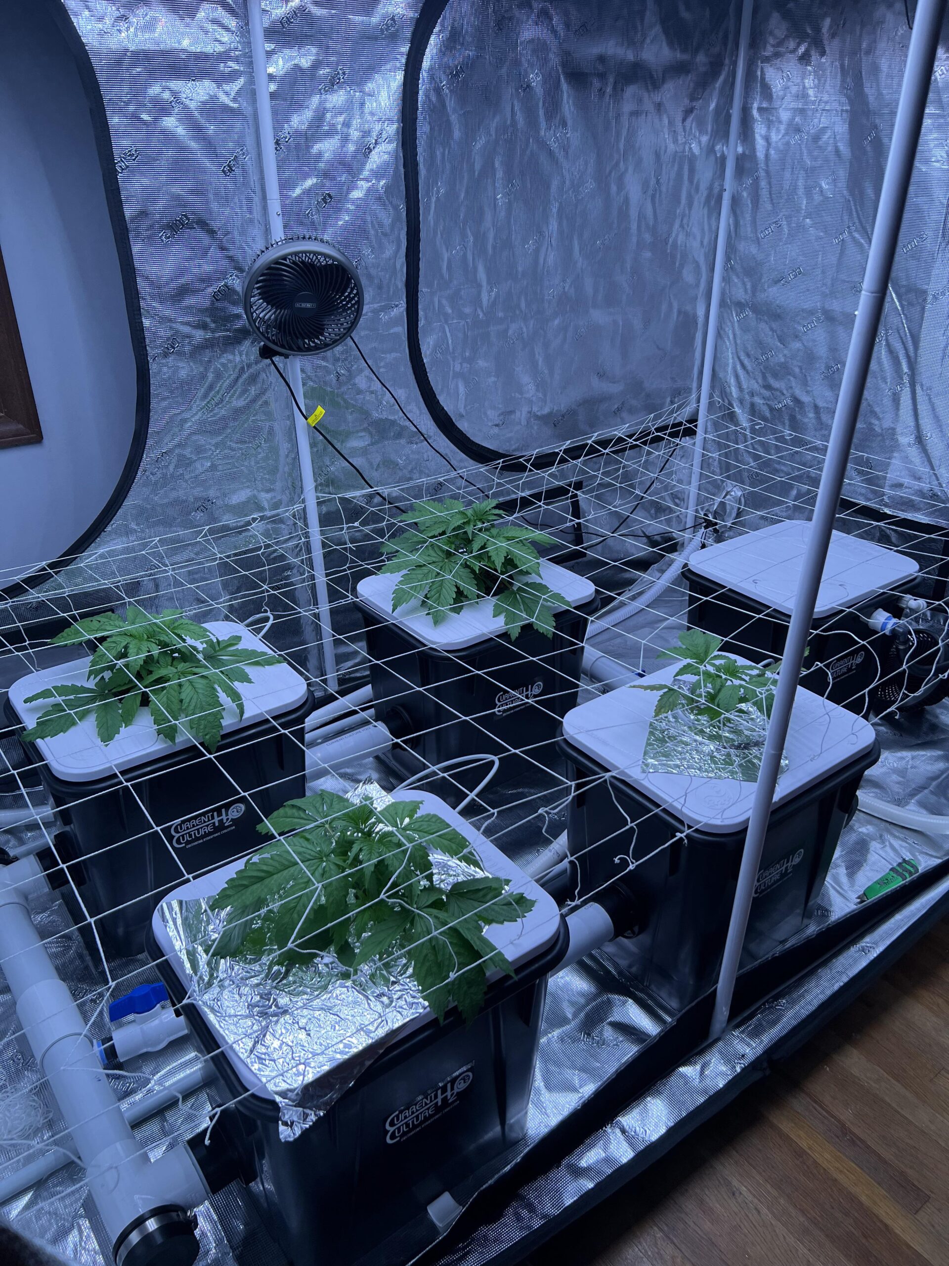 as low as possible only reason you would want them higher is for watering and training since yours is automated should be sweet