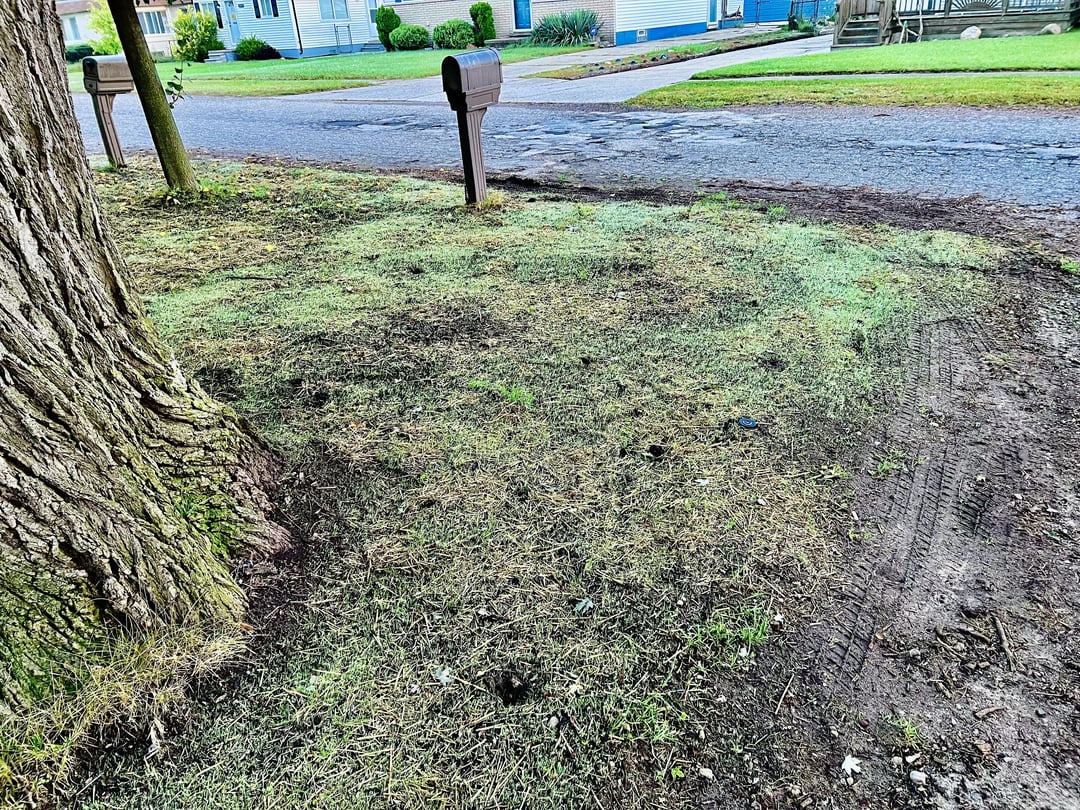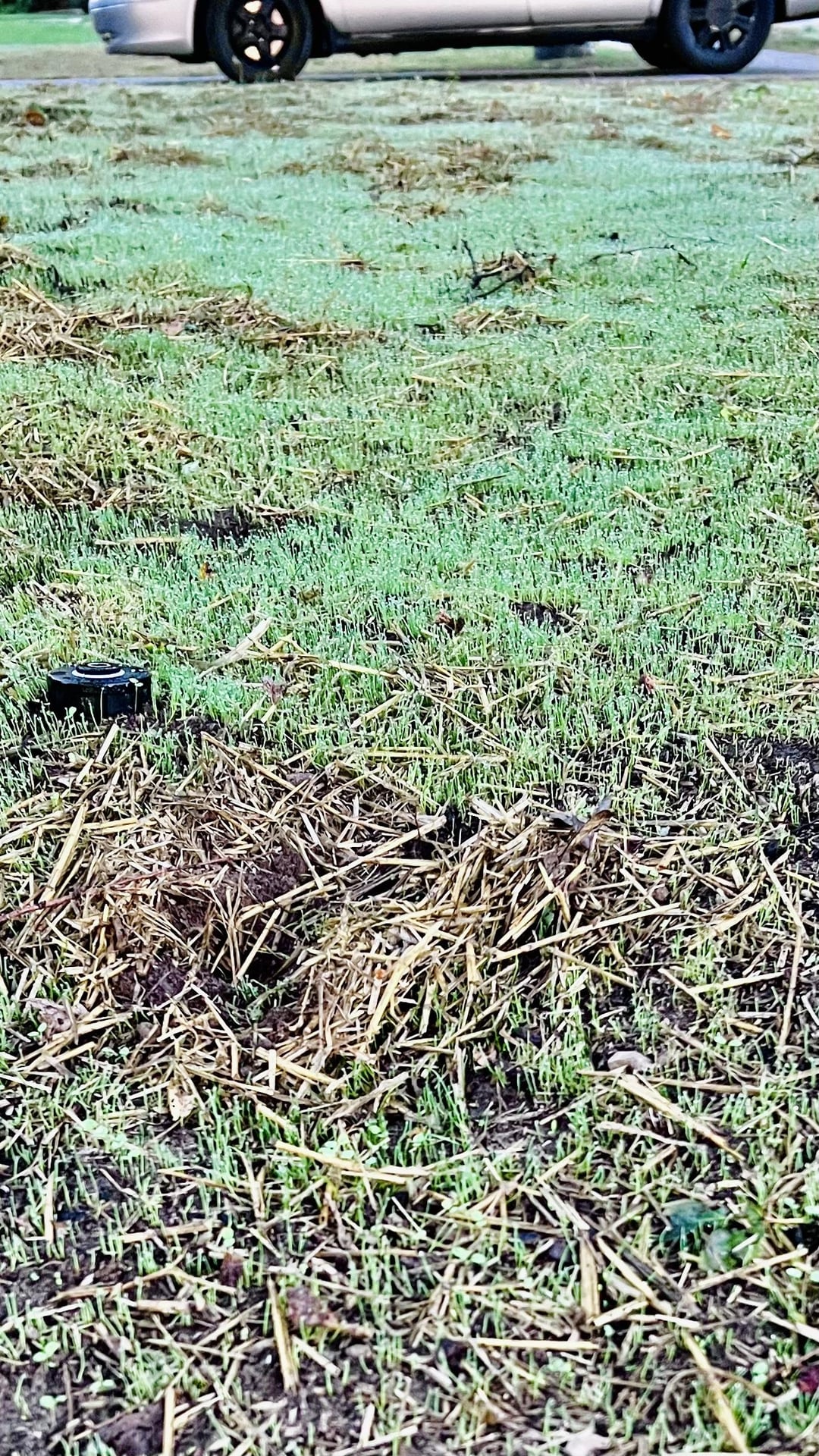 I’m so stoked and proud. Full lawn reno, this is After Midnight pure kbg 10 days after throwing the seed down, caught in the morning dew. 4 days of sunshine high low 80’s here in zone 6b gonna help make this front lawn a reality for winter. I tilled, irrigation install, amended the soil, the works!