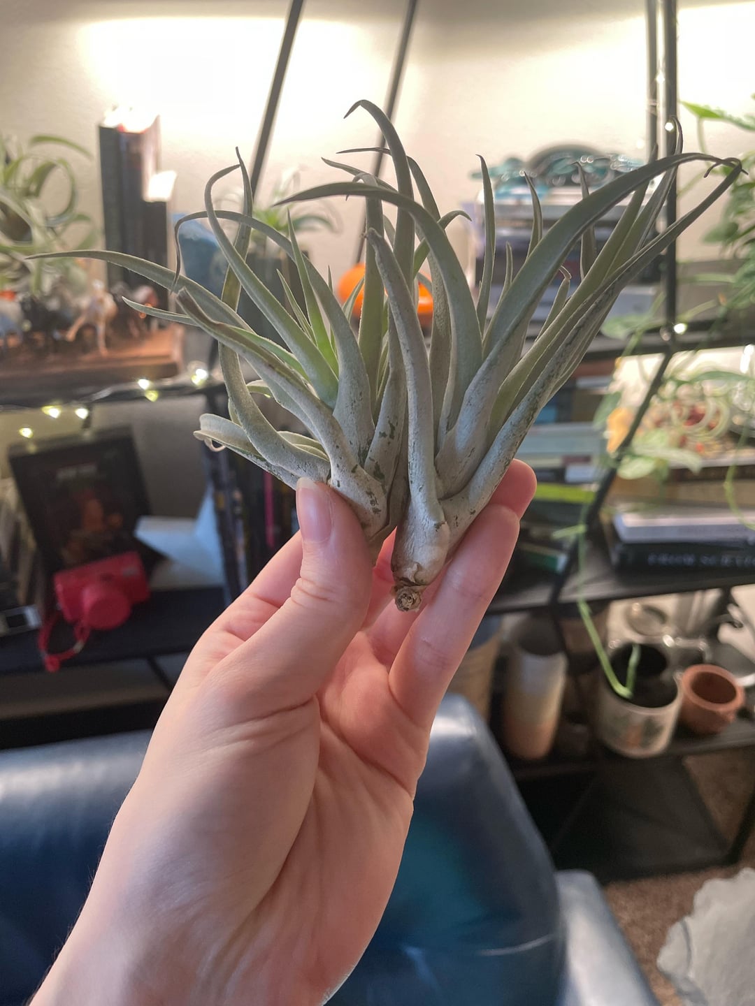 I have a handful of different “wider leaf” type airplants like these that just seem like they’re not as happy as my bulbosa-type tillandsia and I can’t figure out why. I have a Capitata (1st pic), Latifolia, and a bunch of the common kind of bluish airplants (2nd pic, maybe Aeranthos, not sure). I notice they often seem to get perpetually curled outer leaves. This doesn’t seem to change after I dunk/soak them. What is this? Do they need more/less water? Better feed? They all get good light.