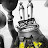 Empty/deflated Mylar balloons on wall to reflect overhead light.