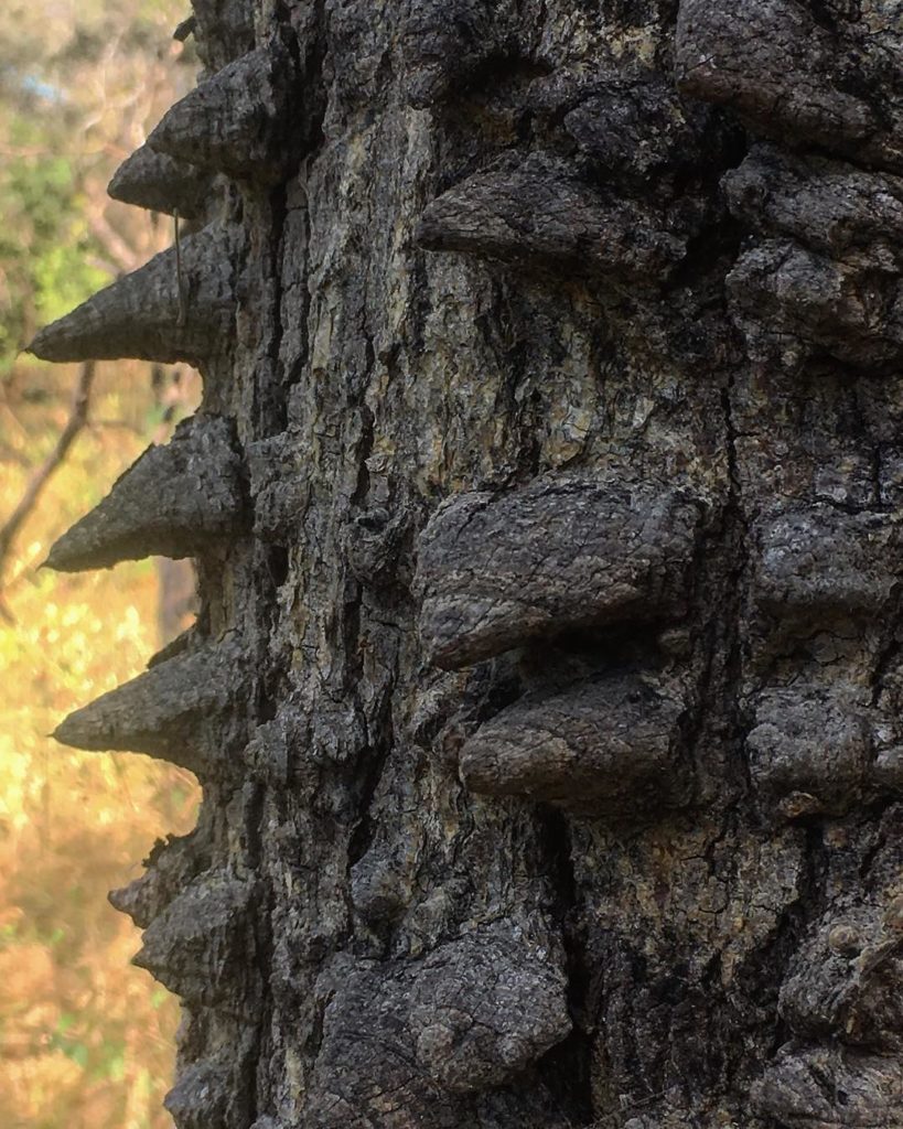 The #bonkers #lethal #gnarly #spikes on the #trunk of #Acacia nigrescens – the #Knob #Thorn #tree – the spikes have even got a curved thorn on the end to #doublewhammy catch you out! #harsh #landscape in #Africa : #survival #tactics come to the fore. @sallyandalice @phoebe.namibia @ridingsafari
