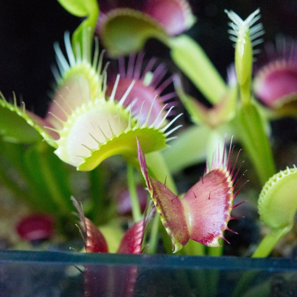 Our B-52 traps are looking ferocious this year š¹Feeeeed meeee!!!! Check out those trigger hairs. Touch one twice in a few seconds and CHOMP š¬#venusflytrap #dionaeamuscipula #dionaeamuscipulab52 #carnivorousplants #thehorticultgarden